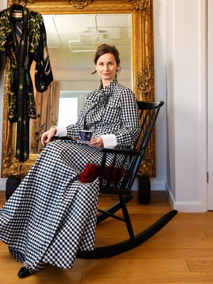 Ihmiset Suomalais-brittiläinen muotisuunnittelija Catharina Eden luo juhlapukuja mittatilaustyönä – "Vaatteissa pitää olla myös huumoria"