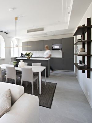 Sisusta Koti historiallisessa Munkkiniemen Kadetissa hurmasi Mervi Kallion kaari-ikkunoillaan – yhteistiloista löytyvät kuntosali, uima-allas ja viinikellari