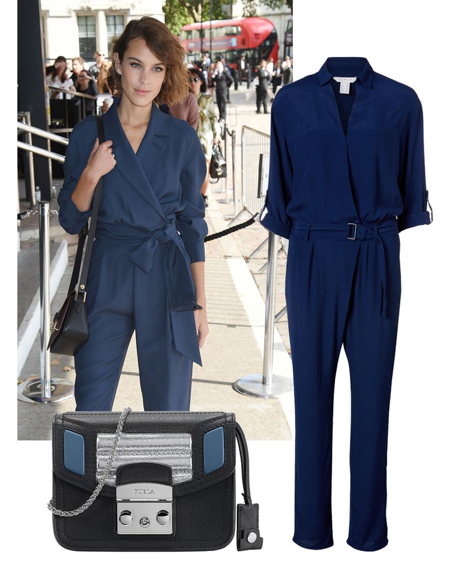 Näin luot Alexan tyylin: Kun haalarissa on kauniita yksityiskohtia, kuten vyö tai leveät kaulukset, muita asusteita ei välttämättä tarvita. Klassinen haalari soveltuu niin töihin kuin juhlaankin. Juhlavan ilmeen luot korkeilla koroilla ja näyttävällä käsilaukulla.