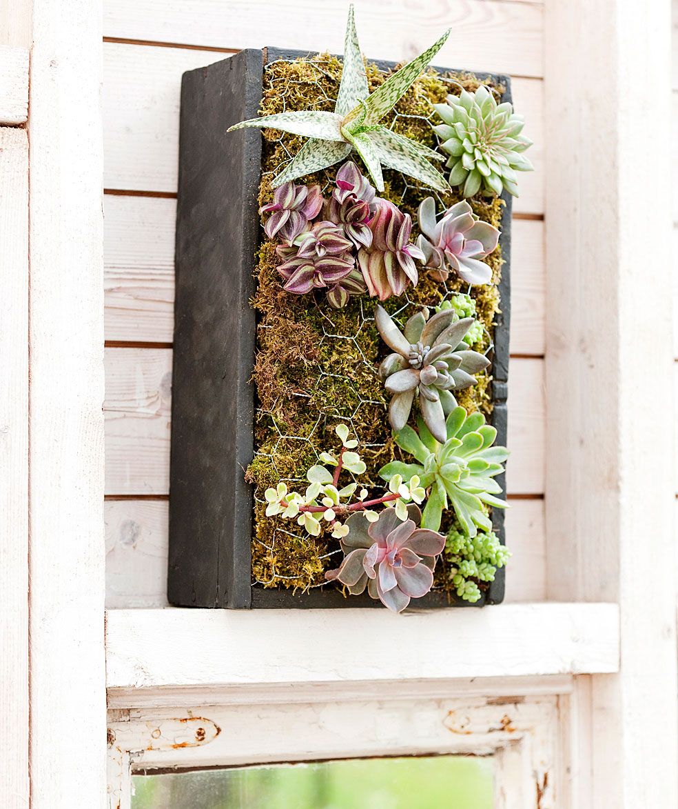 Mehikasvit ovat trendikkäitä ja helppohoitoisia kasveja. Ne sopivat hyvin laakeisiin ruukkuihin esimerkiksi koristekivien kanssa. Teimme mehikasvitaulun maalaamalla vanhan puulaatikon mustalla maalilla. Täytimme laatikon hiekansekaisella mullalla, jonka pinnan peitimme sammaleella. Leikkasimme kanaverkosta sopivankokoisen palan, jonka niittasimme kiinni laatikon yhdeltä reunalta. Pujotimme kasvien multapaakut verkon reikien läpi ja istutimme ne paikoilleen. Niittasimme verkon lopuilta reunoiltaan kiinni laatikkoon. Mehikasvit varastoivat itseensä vettä, joten niitä ei tarvitse kastella usein. Kastelua varten taulu nostetaan pöydälle.
