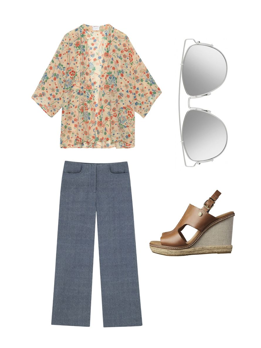 Kukkakuosit ovat toistuva teema kesämuodissa. Välillä kukat ovat pieniä ja romanttisia perinteisen Liberty-kuosin hengessä, toisinaan räiskyvän maalauksellisia tai kolmiulotteisia. Aasiassa kirsikkapuut kukkivat parhaillaan, ja itämaiseen tyyliin kukat kuuluvatkin oleellisesti. Aidot kimonot kukkakuosineen ovat kokonaisvaltaisia taideteoksia. Gant Ruggerin kimonohihaisen yläosan haalistuneessa sävymaailmassa on ripaus nostalgiaa. Vastaavia tuotteita kannattaa etsiä myös vintagekaupoista. Kiilakorko ja leveä lahje tekevät tyylistä täydellisen, peililaseja unohtamatta.