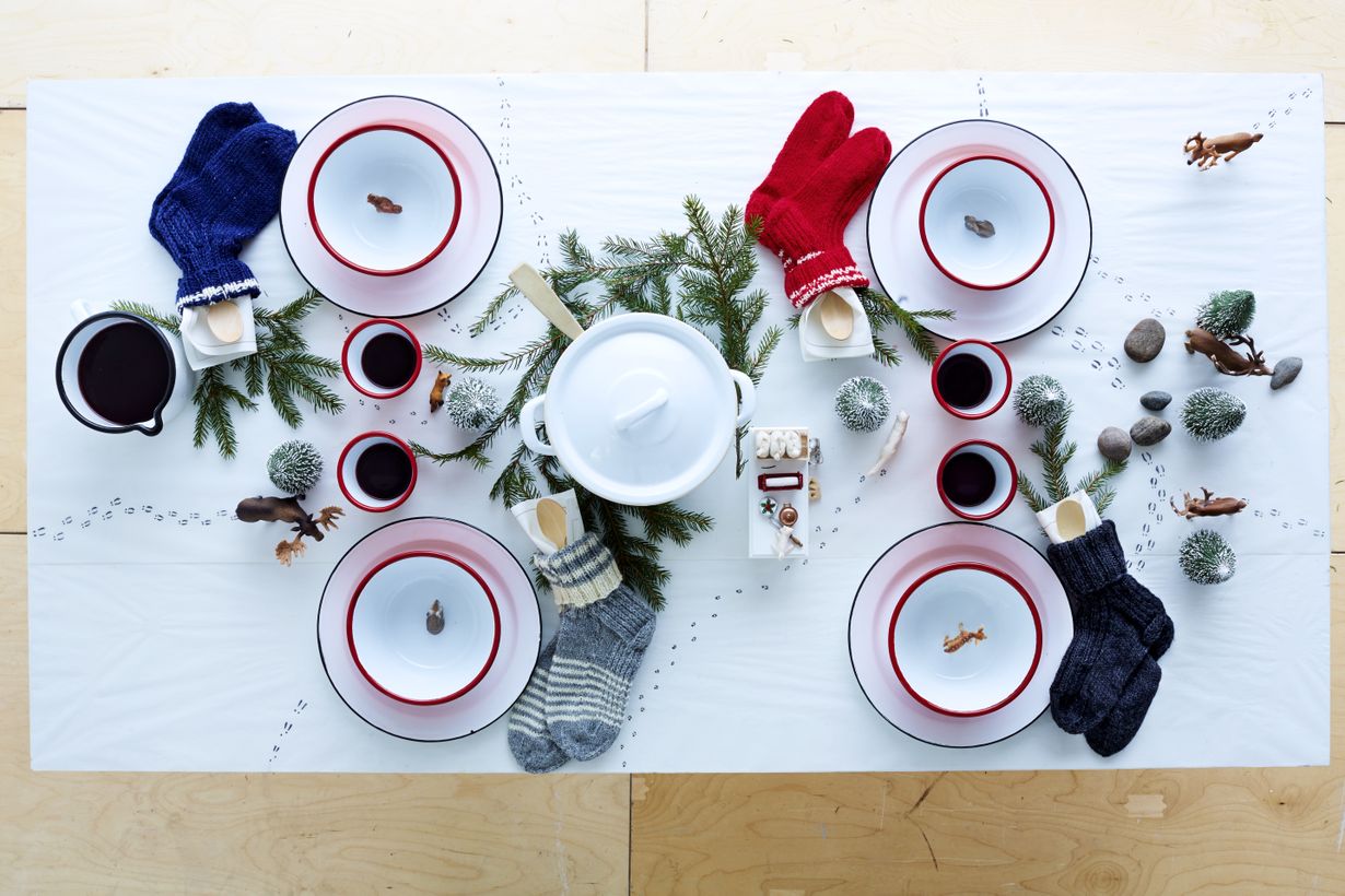 Lähimetsästä haetut havunoksat ja kivet sekä lelulaatikosta lainatut eläimet vaeltavat talvisessa luonnossa joulupuuroa metsästäen. Kattaukseen voi myös piilottaa lahjat ruokailijoille, kuten villasukat ja pikkueläimet puurokulhoissa.