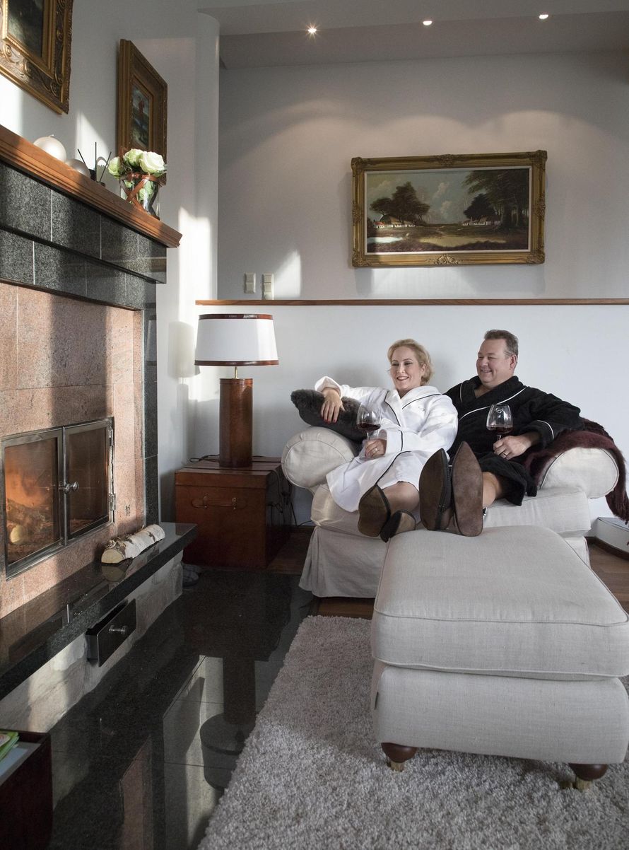 Pariskunta saattaa pitää hallituksen kokouksen saunan lauteilla.