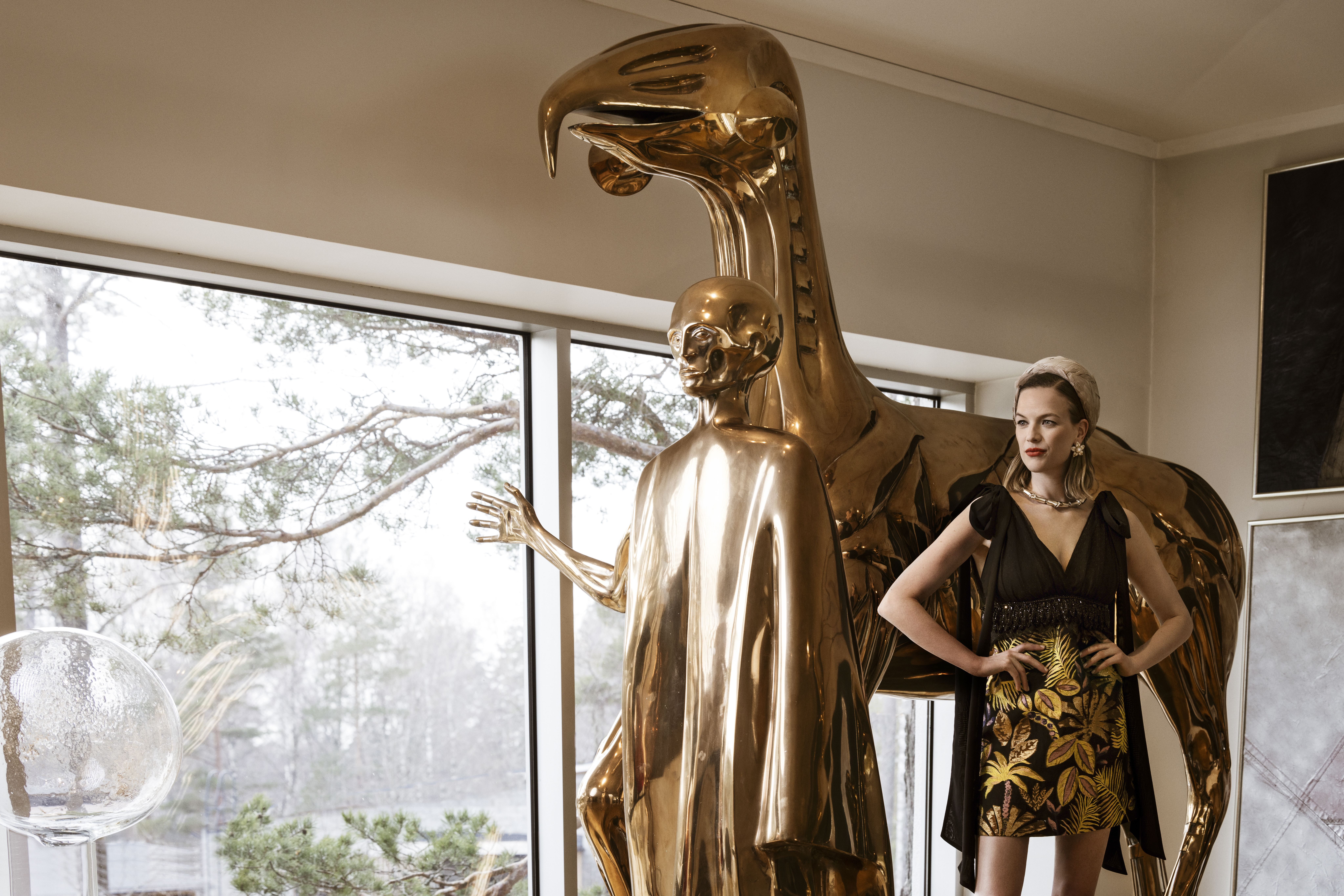 Legendaarinen korumuotoilija Björn Weckström valloitti maailman valkoisessa nahkapuvussa ja pukeutuu yhä joka päivä kotonaankin puvuntakkiin. Gloria sai ainutlaatuisen tilaisuuden toteuttaa taiteilijakodissa muotijutun, jossa ajankohtaiset vintage- ja second hand -vaatteet yhdistettiin Weckströmin Kalevala Korulle suunnittelemiin uniikkikoruihin.