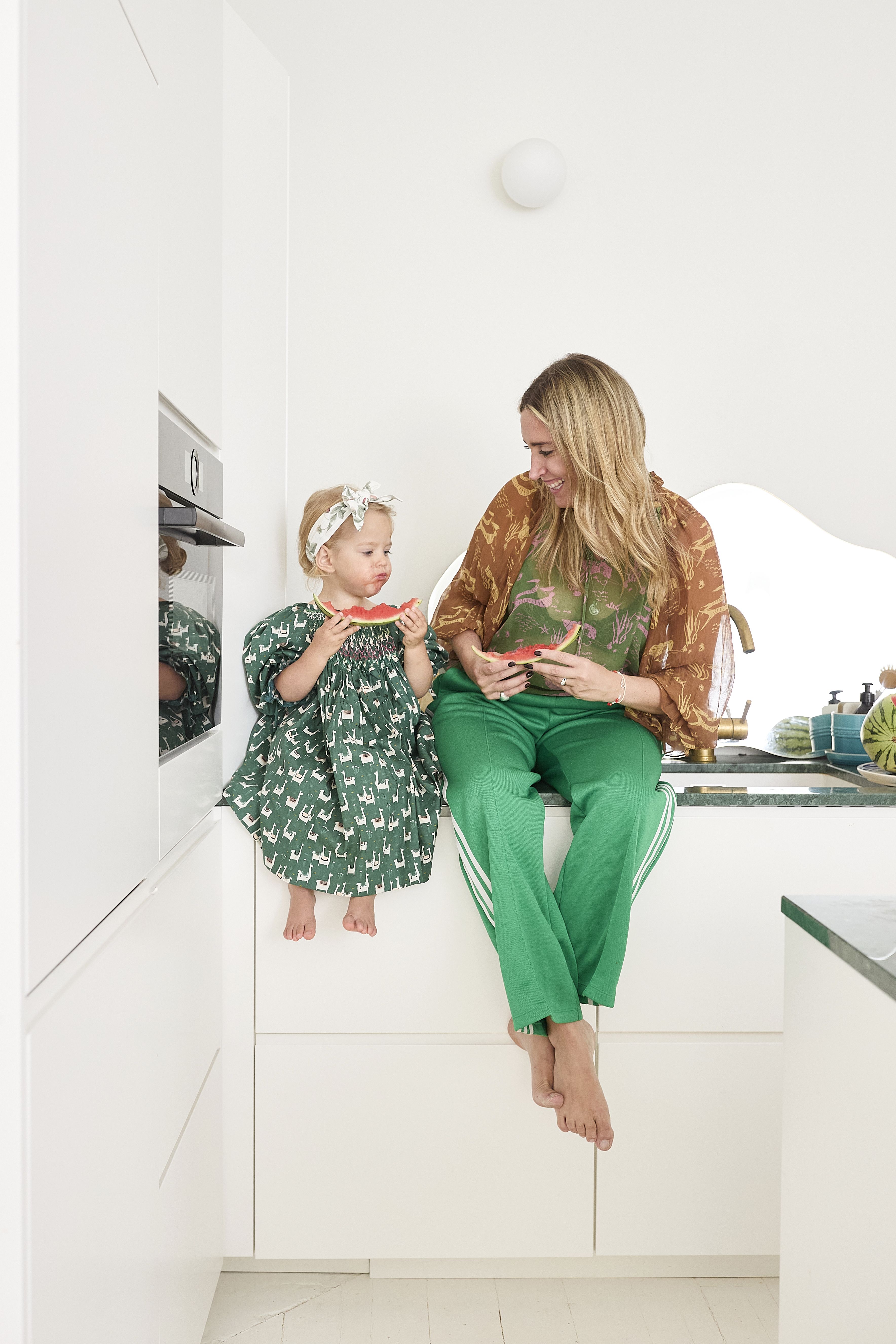 Florencesta sisustus ja elämä ylipäätään on parempaa värikkäänä. Florencen juuret ovat Brasiliassa, mutta hän on asunut Suomessa vuodesta 2017. Nykyiseen asuntoonsa Florence, Okko ja parin tyttäret Cora, 5, ja Eva, 2, muuttivat kuluvan vuoden keväällä. Kodin pinnat ovat pääosin valkoiset, mutta muutamaan seinään on jo kiinnitetty maalivalmistajan värikortit mahdollisten tulevien värien mallailua varten. Huonekaluissa, valaisimissa, tekstiileissä ja tauluissa on jo väriä, samoin makuuhuoneen seinissä.