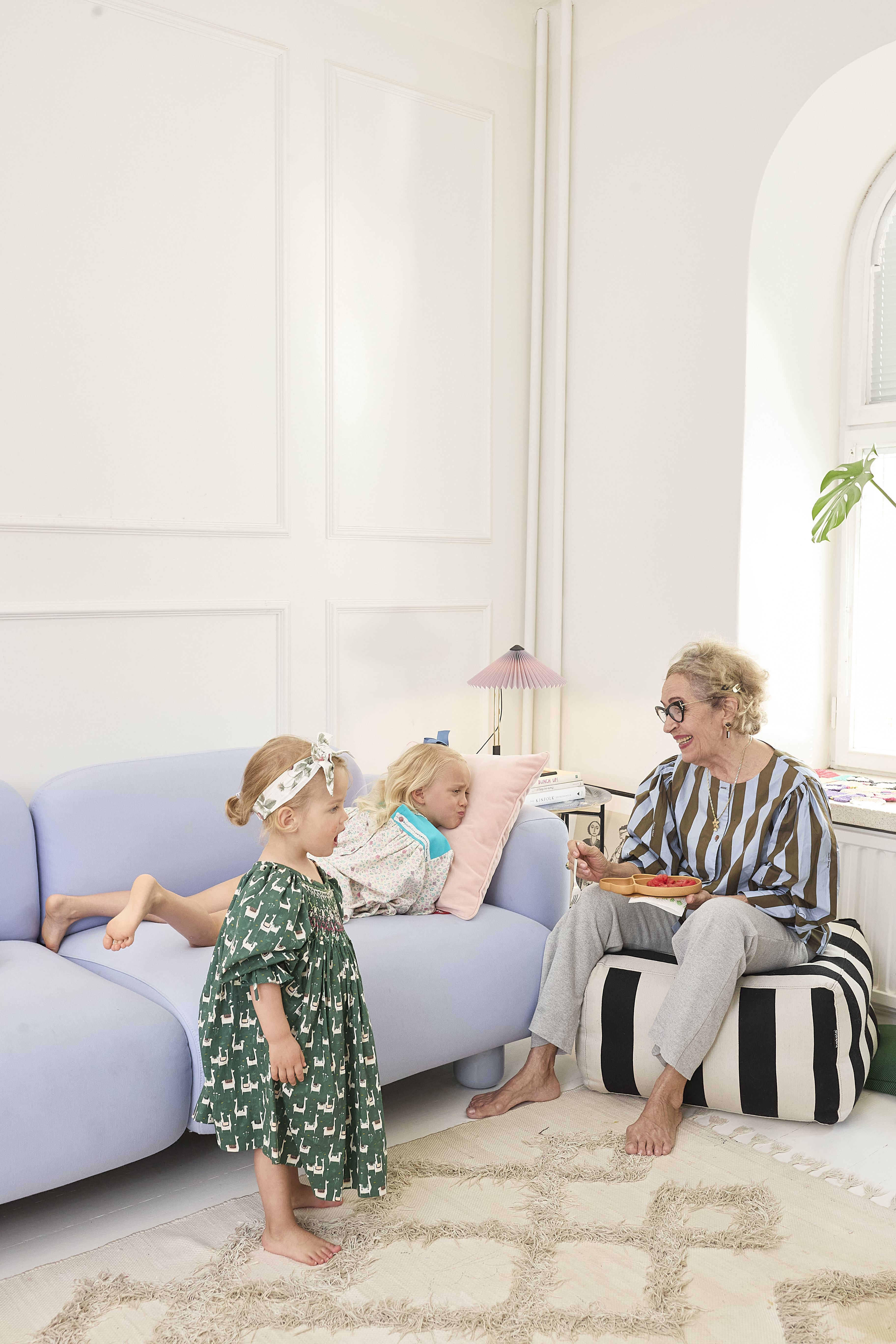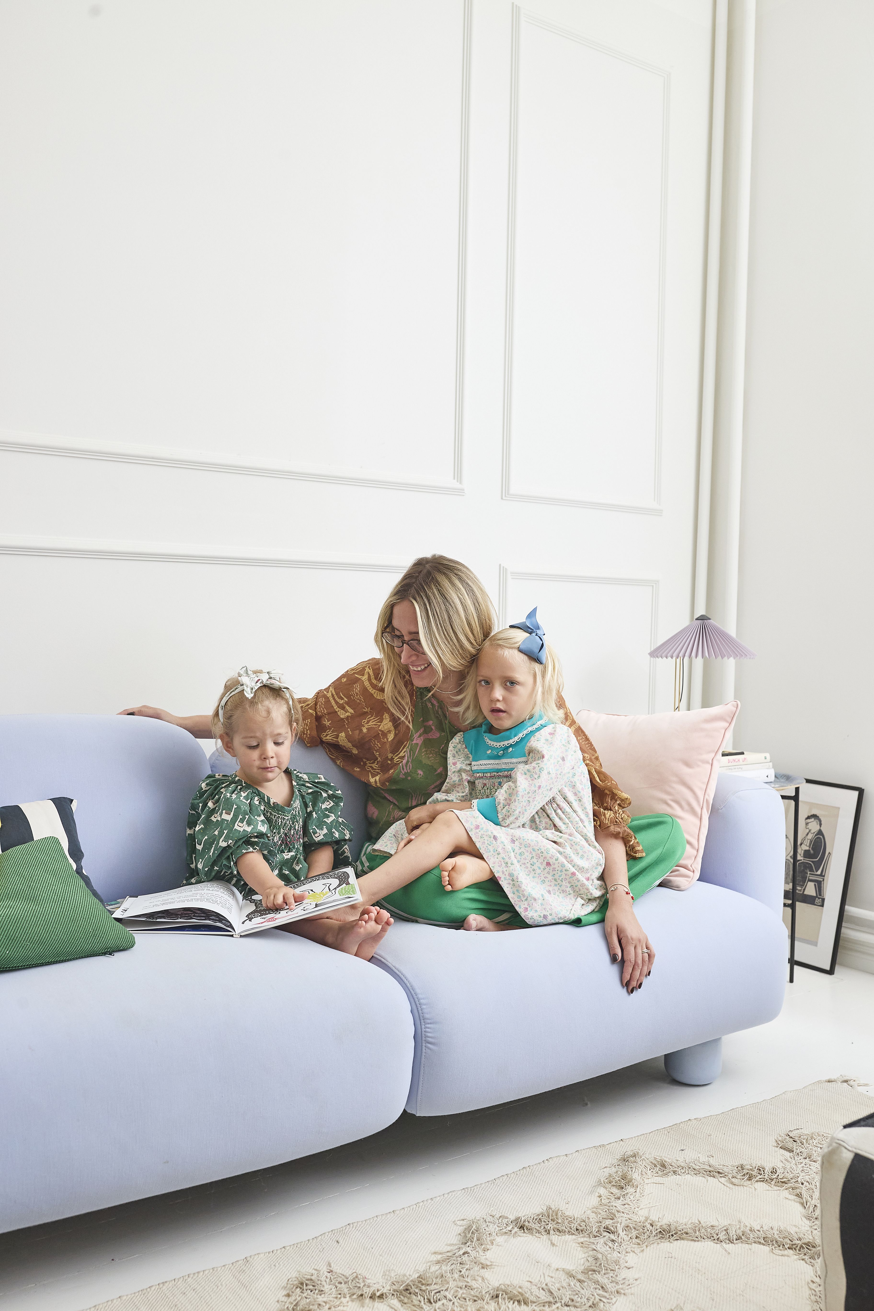 - Hän ei ollut vakuuttunut vaaleansinisestä, mutta itse halusin ehdottomasti tämän värin. Sohva on niin iso hankinta ja näkyvä huonekalu, että sitä täytyy rakastaa.