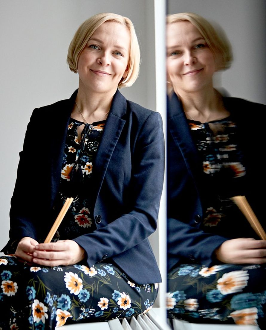 Suvi Haimi, 37, mikromuovittoman materiaalin ja biohajoavia pakkauksia kehittäneen Sulapacin toinen perustaja ja lääketieteellisistä biomateriaaleista väitellyt tohtori.