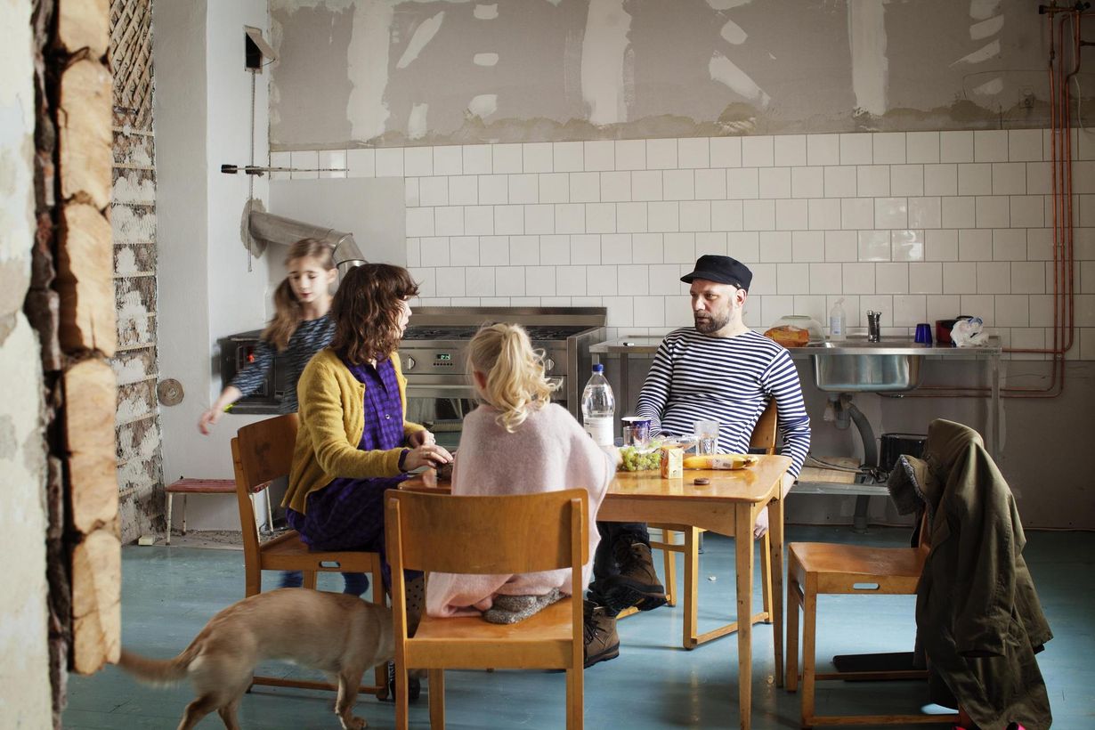 Loviisalaiset ystävät ovat majoittaneet perhettä, ainoastaan Mikko herää välillä raksalta kasvot kalkkipölyssä.