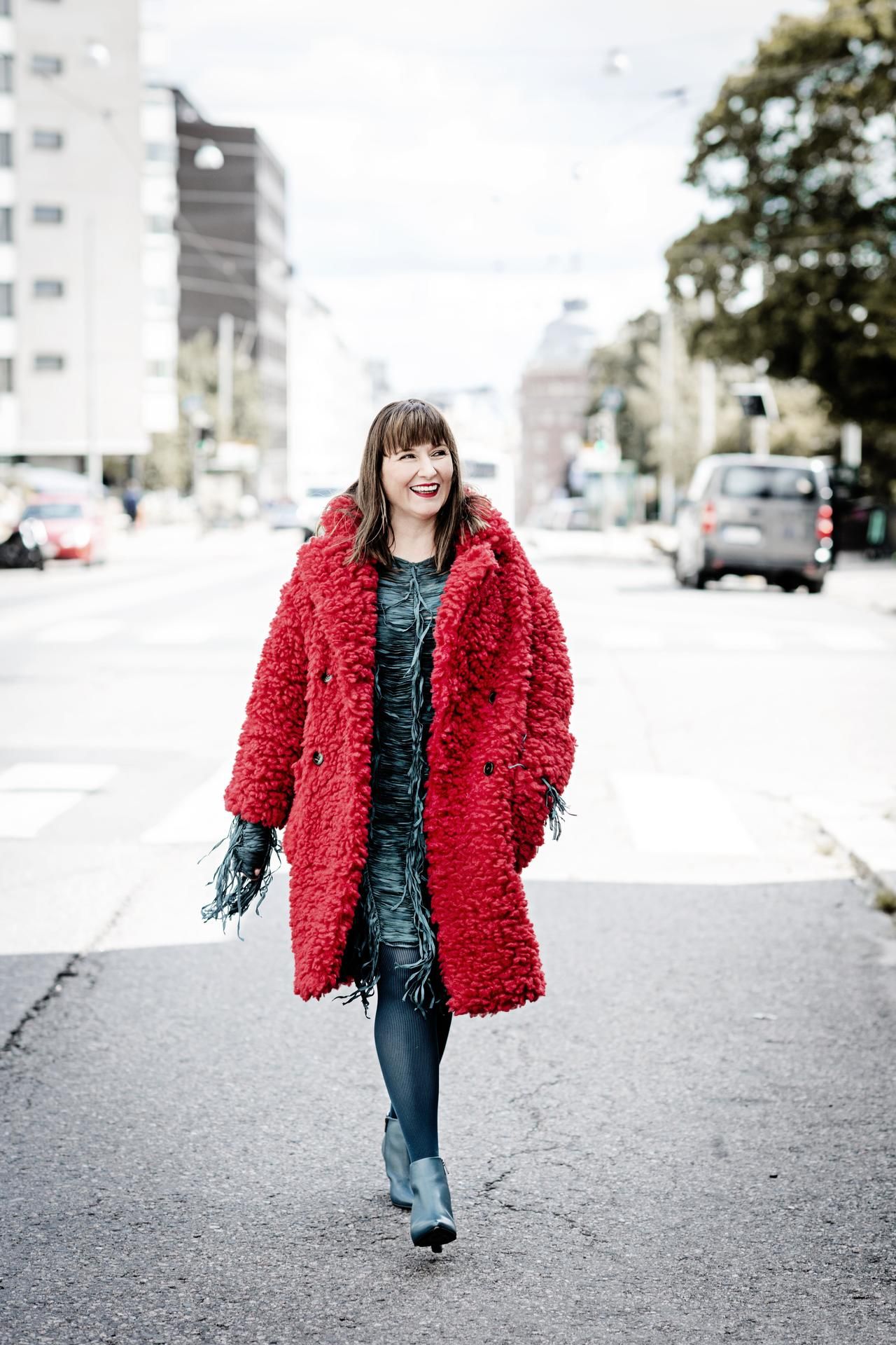 – En tosiaan ole mikään eleetön pukeutuja, päinvastoin. Minulla ei ole koskaan sellainen olo, että olen ylipukeutunut, koska on parempi olla yli kuin ali. Jos huvittaa, laitan vaikka hopeiset vaatteet töihin. No, paitsi jos on ulkokuvauksia talviaikaan.