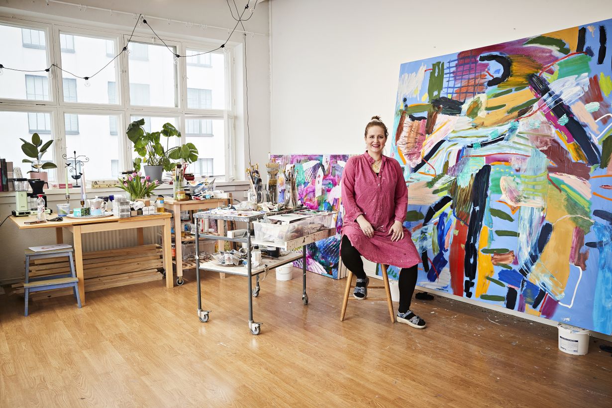 Kuvataiteilija Jenni Vakkilainen tavoittelee nautintoa niin työnteossaan kuin maalauksissaankin.