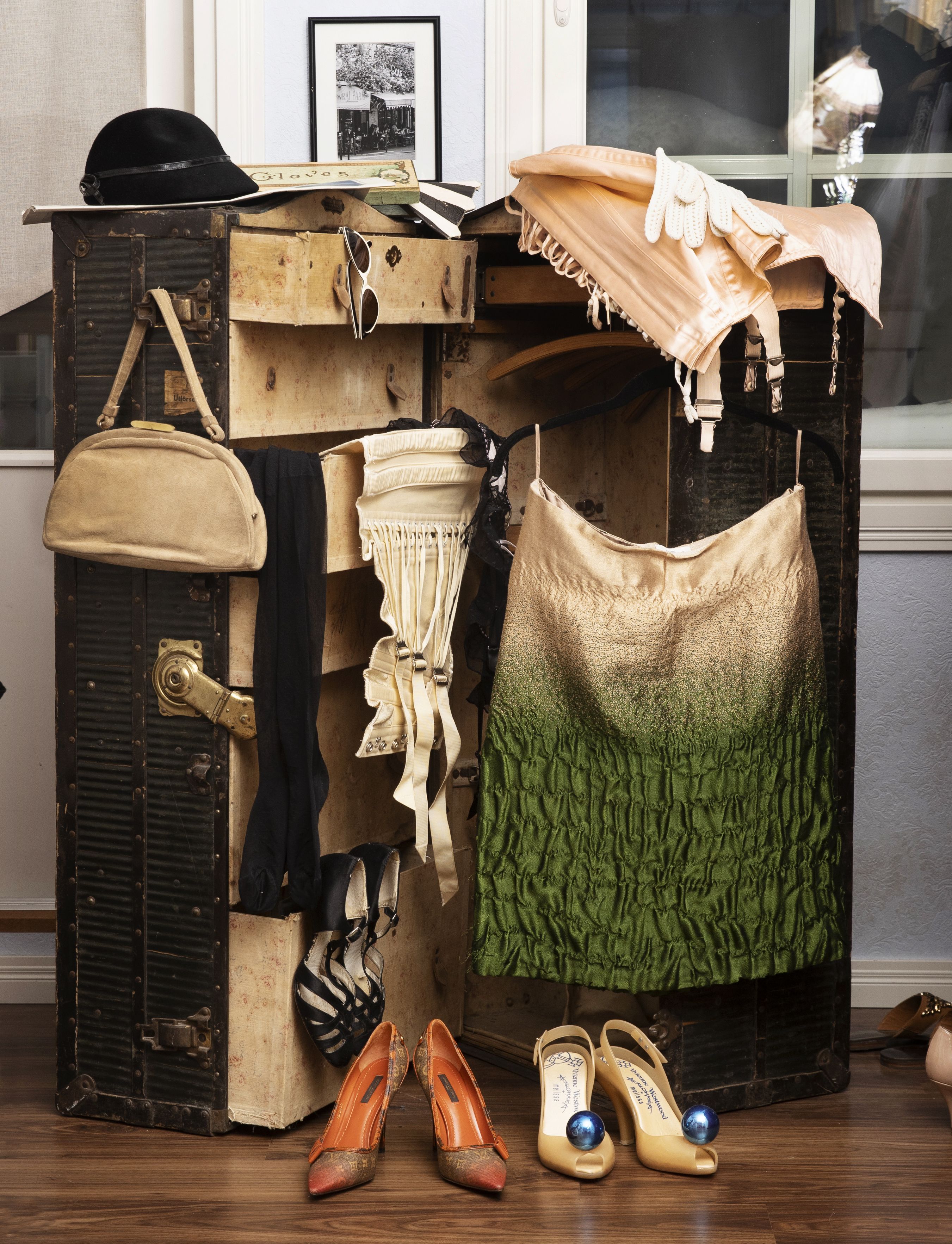 Charlotta ratsasi Heinin vaatekaapin ja on tuonut sinne paljon lisää vintageaarteita, kuten Heinin laukusta pilkottavat Louis Vuittonin oranssit korkokengät.