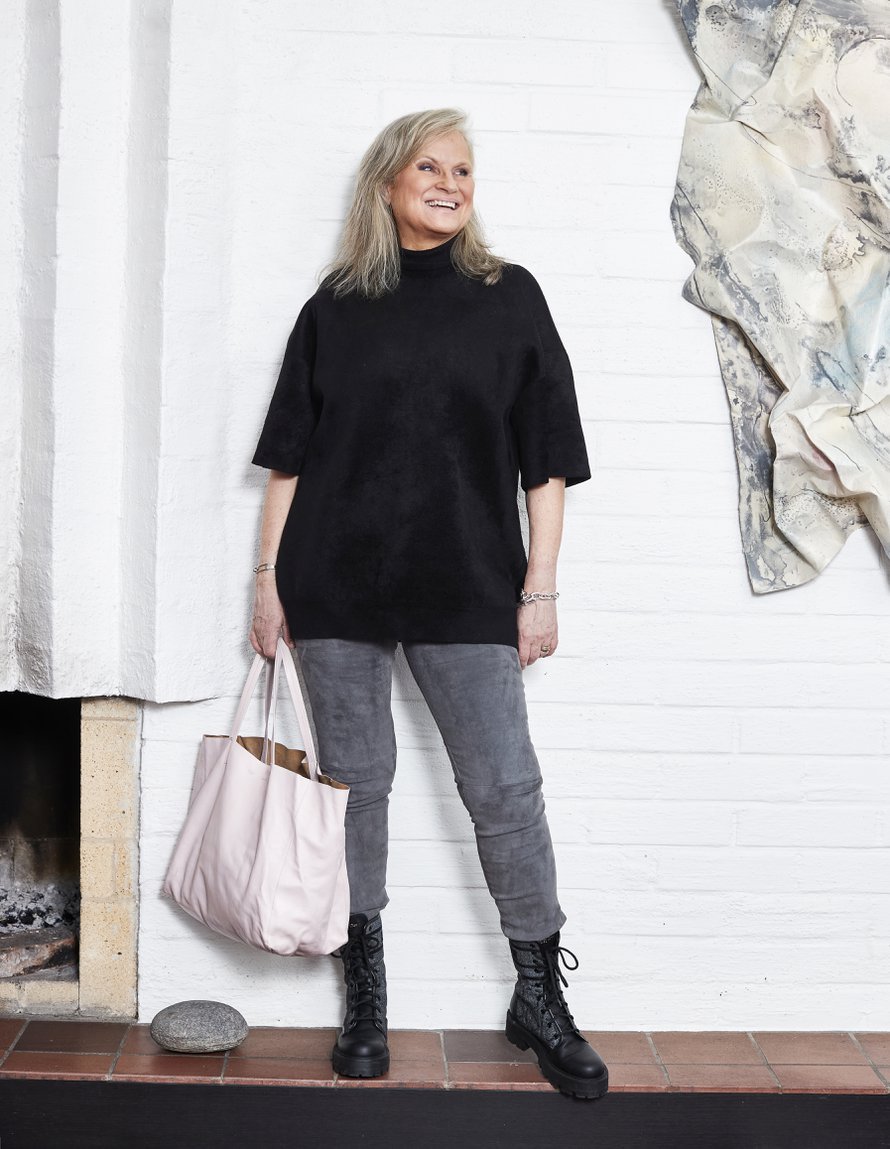 Malliaikoina työpäivät kuluivat vaatteita vaihtaen, eli oma pukeutuminen ei ollut niin tärkeää. Kun perustin mallitoimiston, käytin helppoja perusvaatteita, kuten rentoja puseroita ja neuleita. Nykyään olen fiilispukeutuja. En koskaan käytä samaa asua kahtena peräkkäisenä päivänä. Matkoille pakkaan täsmällisesti tarkkaan miettimäni kokonaisuudet. Minulla on kansioissa polaroidkuvat vaatteistani ja kengistäni, ne auttavat palapelileikissäni.