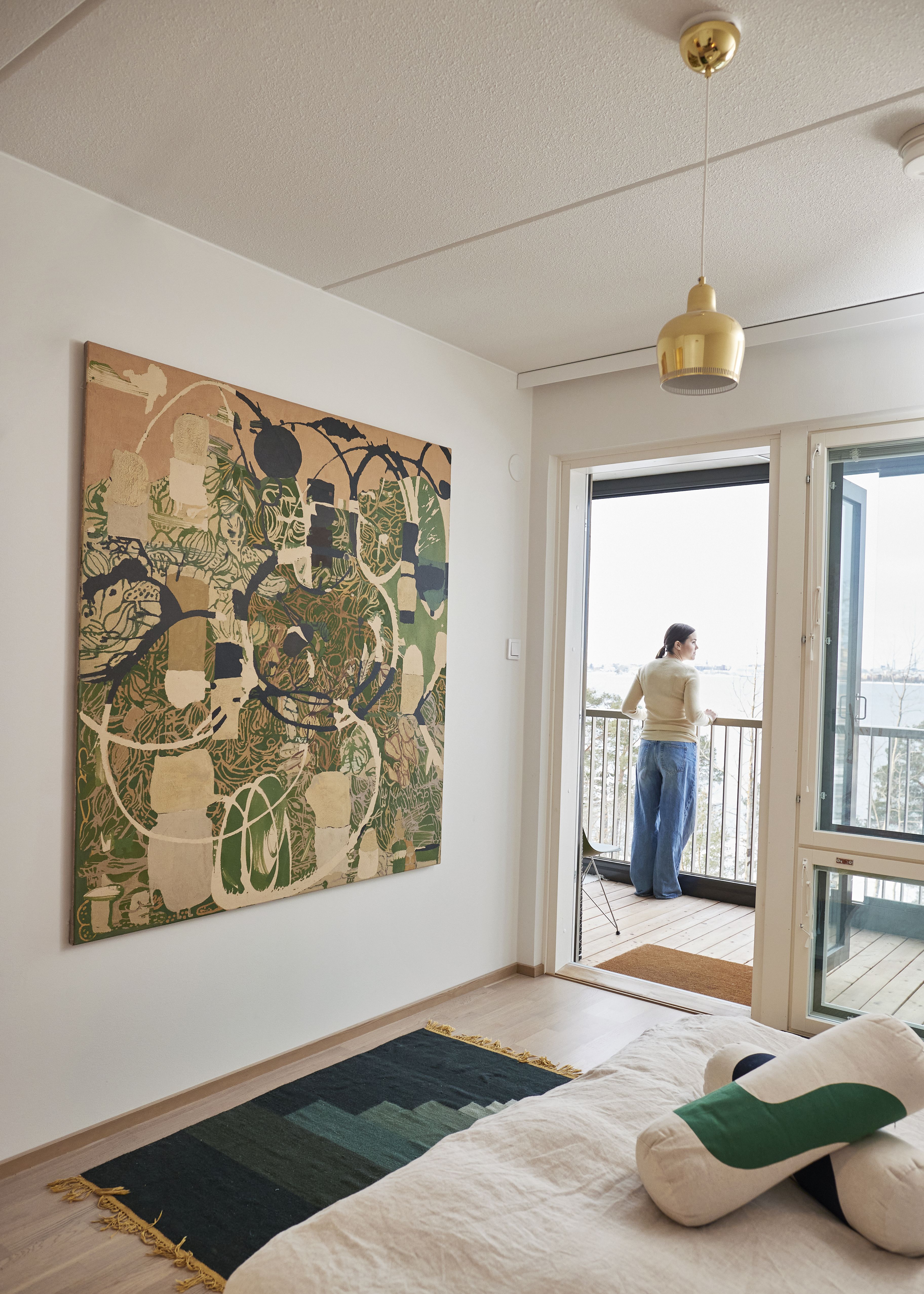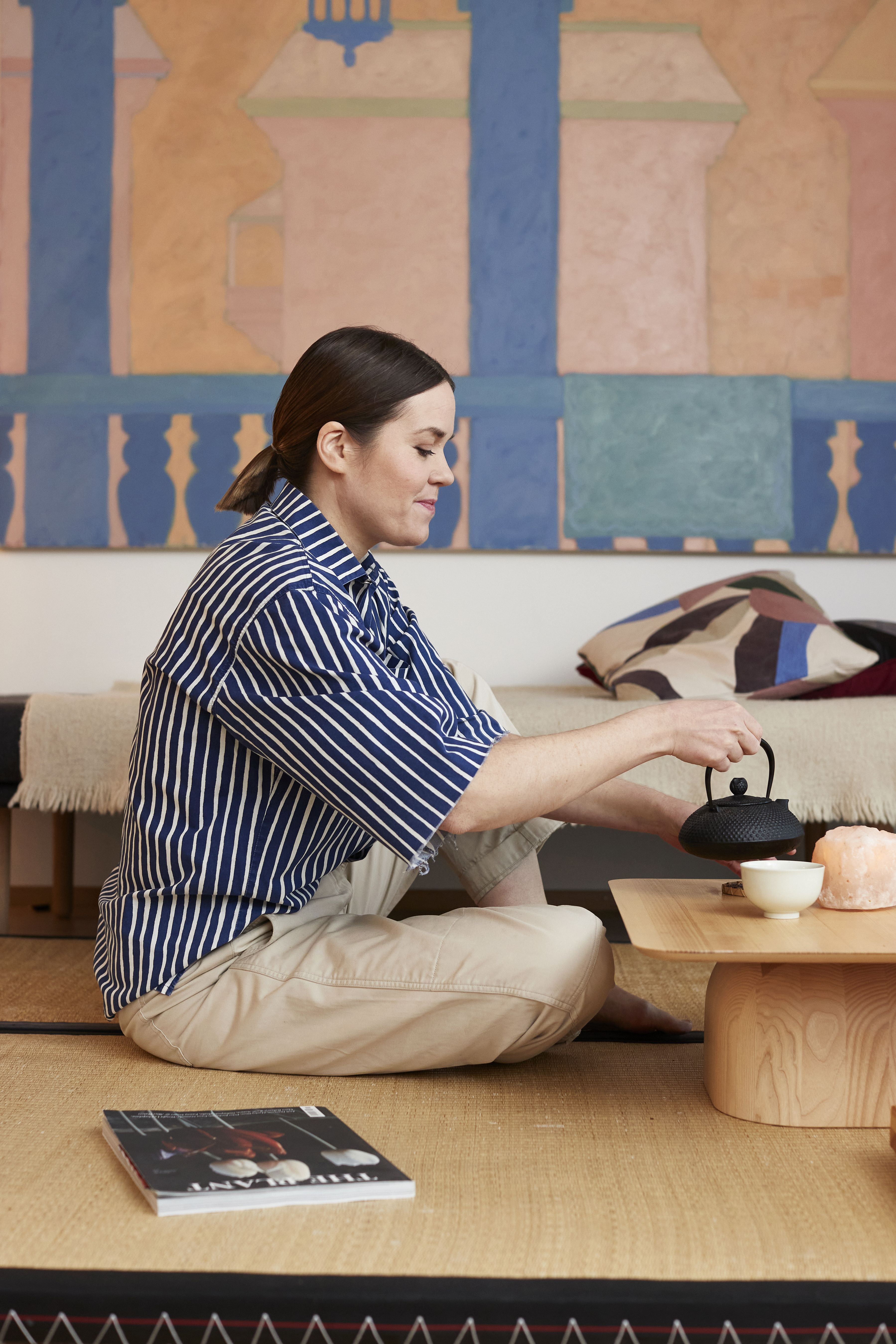 Marimekon suunnittelujohtaja Emmakaisa Kirves arvostaa arjen rauhallisia hetkiä vaativan työn vastapainona. Perheen päivä alkaa tatamilla ja päättyy tatamille.
