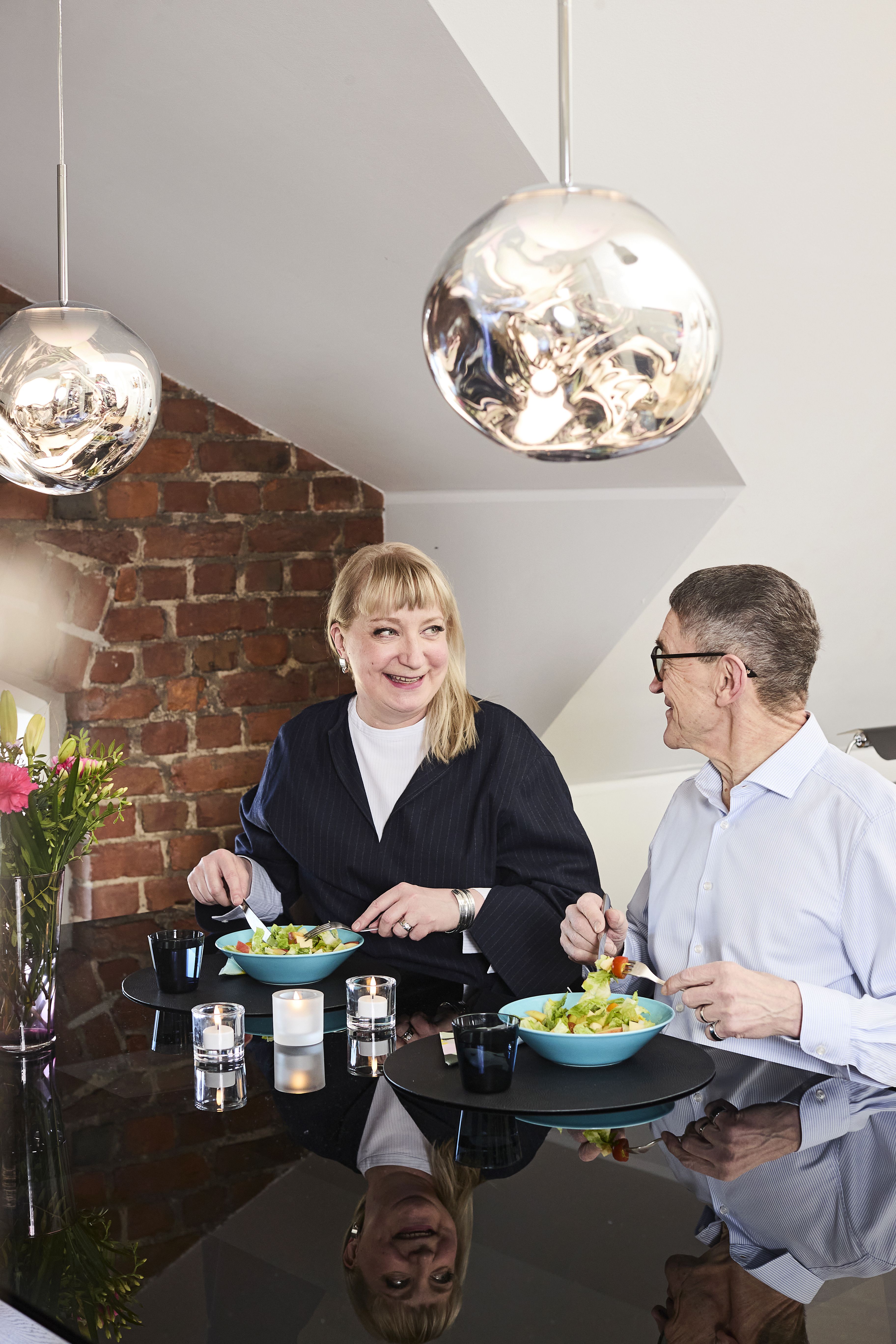 -Olin hirveän onnekas, kun saatoin palata töihin pian leikkauksen jälkeen. Se toi arkeen myös kivaa ja kiinnostavaa tekemistä. Ja totta kai minulla oli ihana kultainen Lauri tukemassa minua, Päivi sanoo tarttuen puolisonsa käteen.