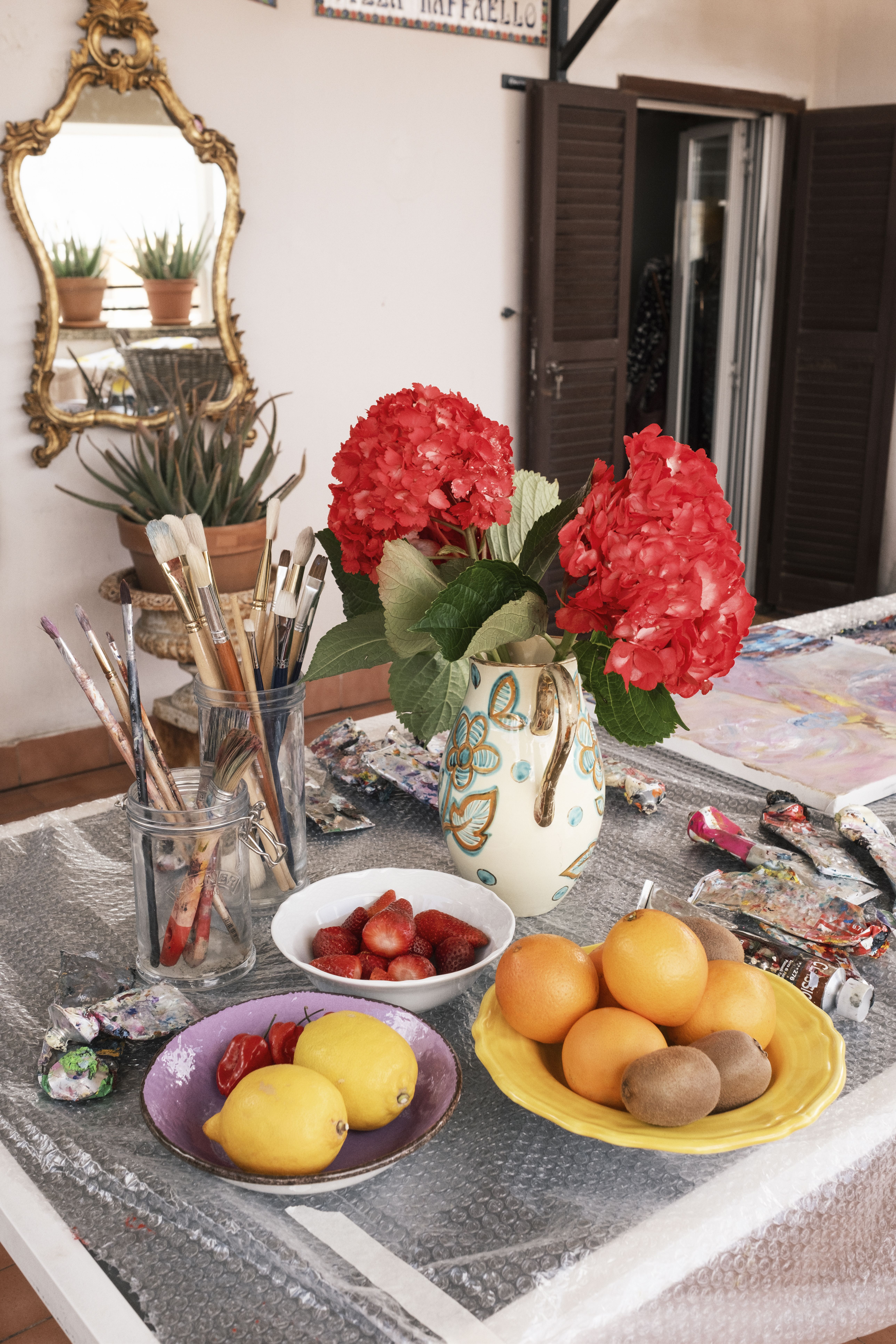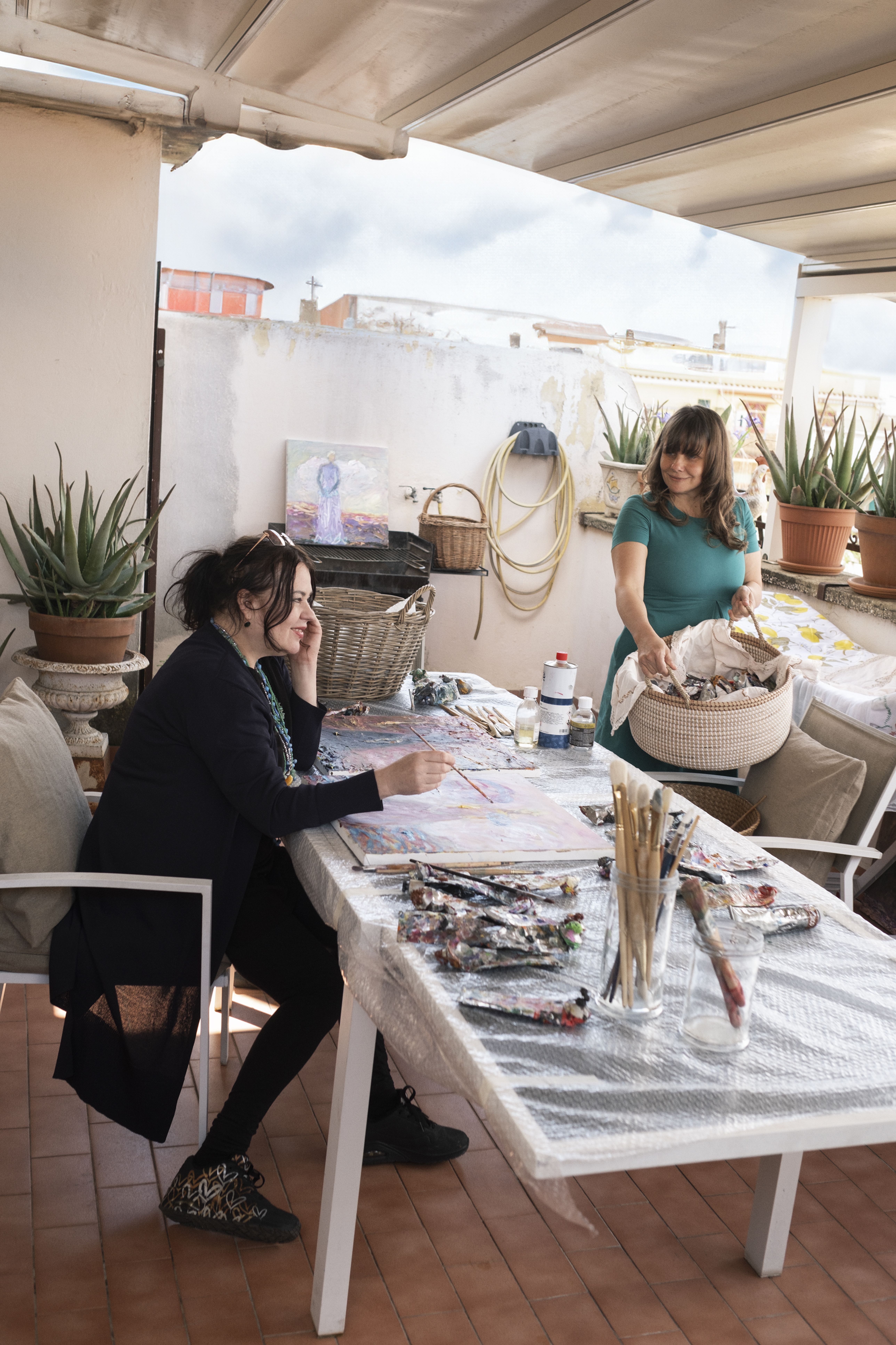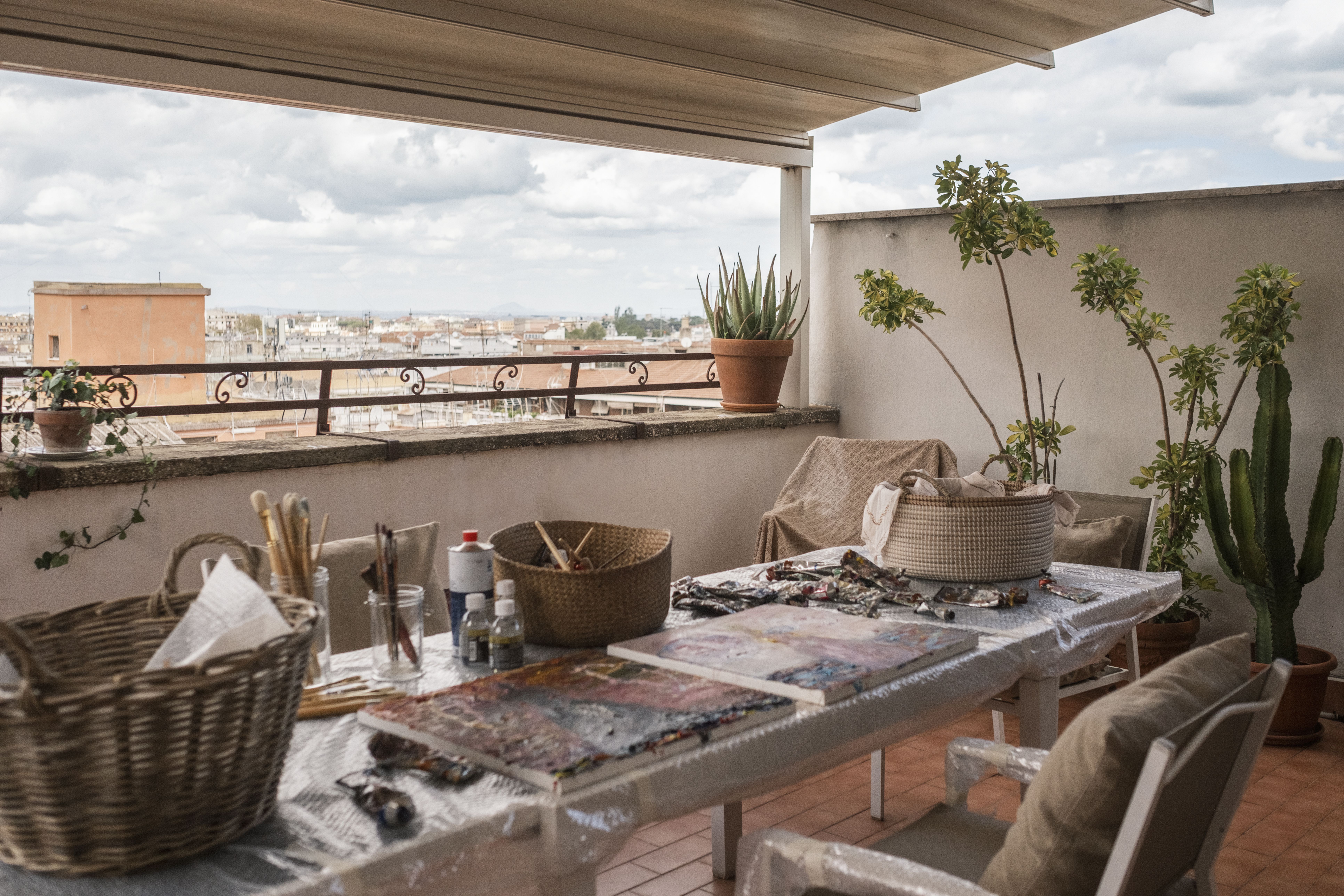 Asuntonsa Villa Raffaellon via Enealta Nanna hankki kymmenen vuotta sitten. Ateljeensa terassilla hän maalaa pieniä teoksia, joille Suomessa ei ole aikaa, mutta Rooman-kodilla on myös toisenlainen tehtävä.