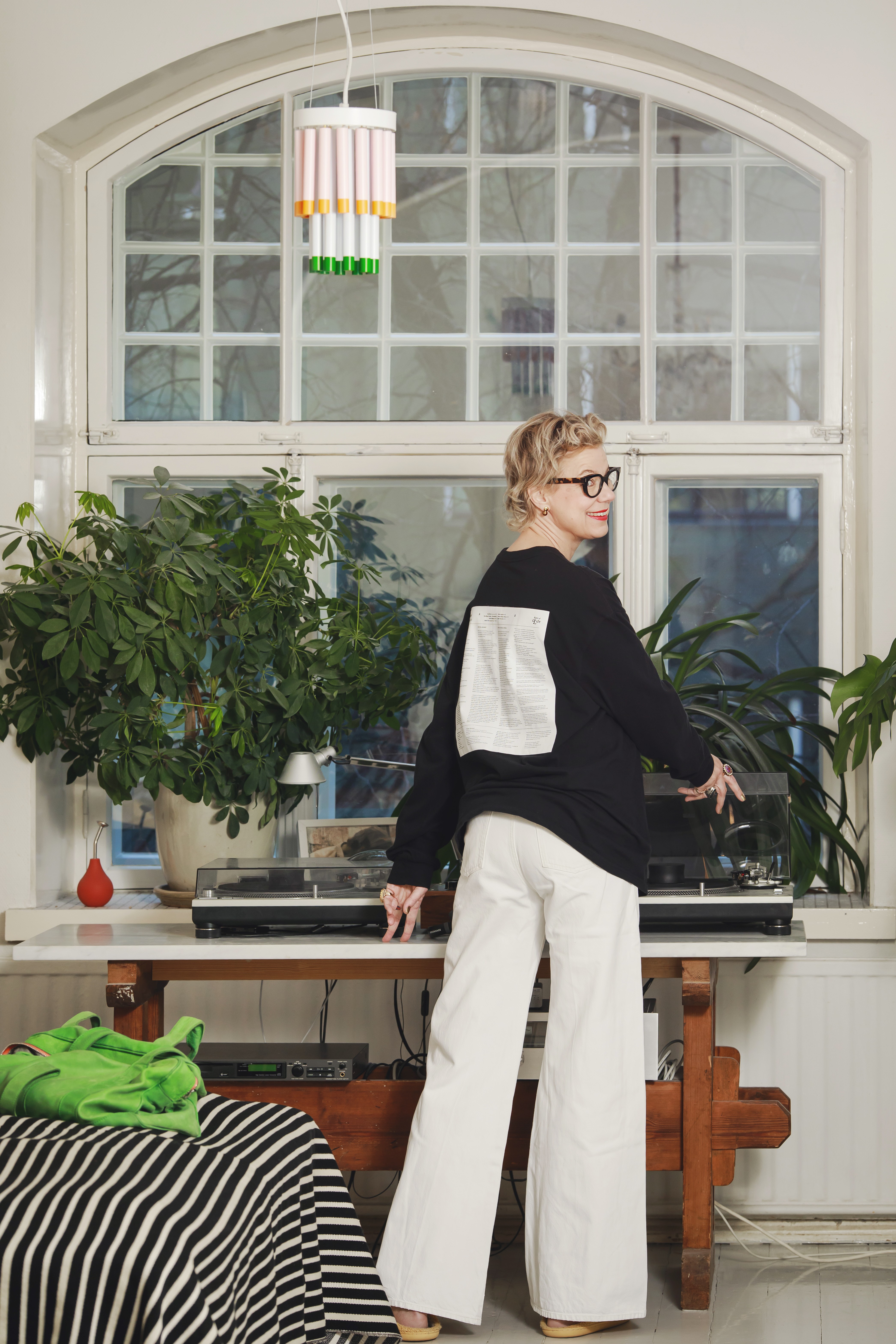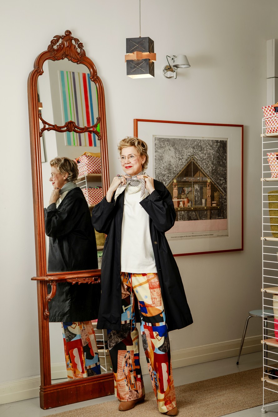 –Tyttäreni ovat innostuneet ysäri- ja milleniaalityyleistä. Itse olen poiminut nykytrendeistä oversize-vaatteet ja lenkkarit. Tykkään ristiriidoista, ja yhdistän mielelläni sukupuoletonta ja naisellista tyyliä.