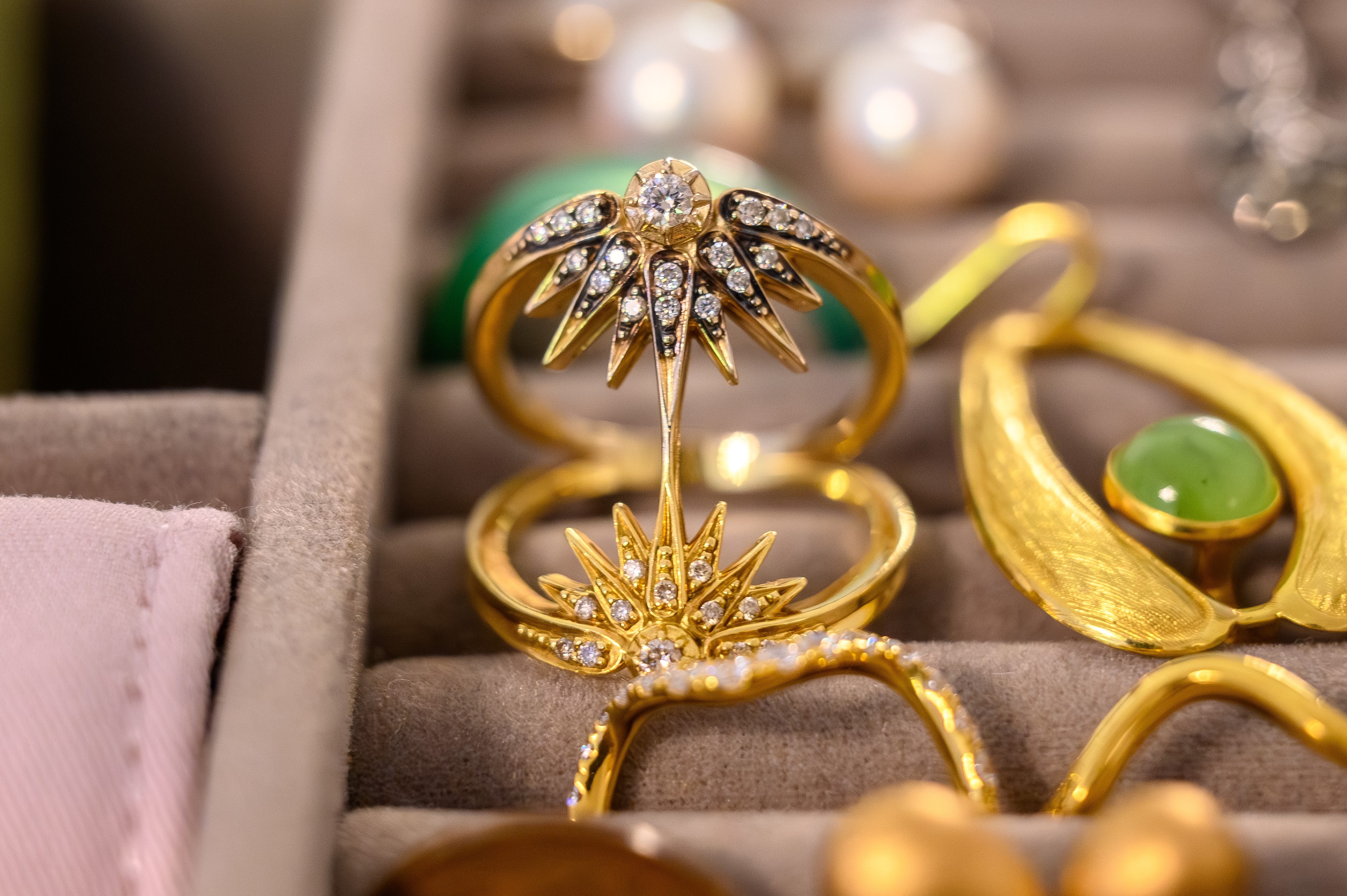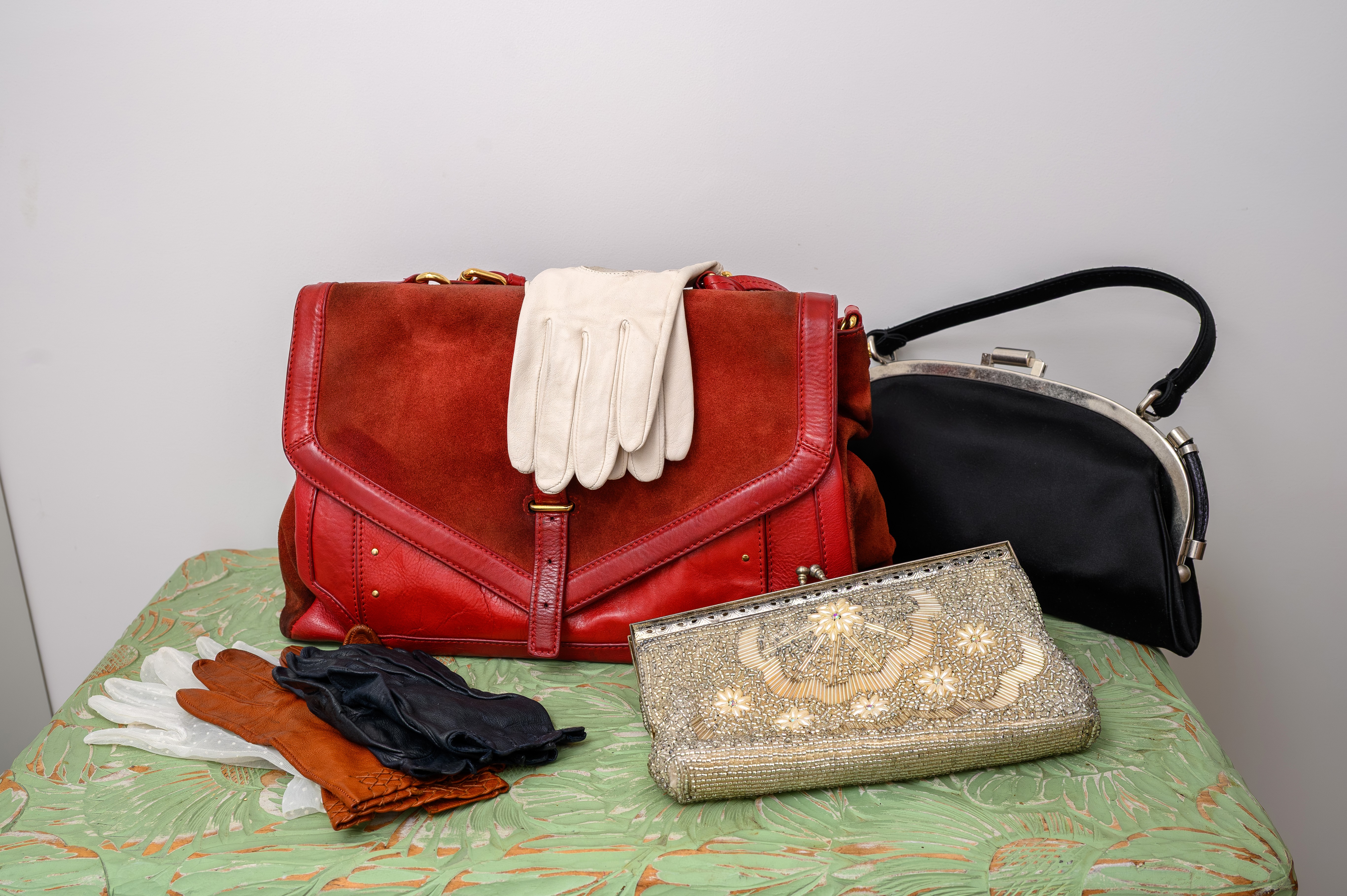 Käytössä on yhä punainen nahkalaukku, jonka äitini osti minulle Italiassa, kun olin 18-vuotias ja halusin bilelaukun. Arkilaukkuni on klassinen brittiläinen tummansininen Smythson. Hopeinen iltalaukkuni on Englannin-isoäitini, ja mustan laukun ostin palkkarahoillani Harrods-tavaratalosta, jossa olin nuorena kesätöissä. Matalat saapikkaat kuuluvat arkeen ja korot juhlaan. Van Cleef & Arpels -korvakorut sain lapsuudenperheeltäni, kun täytin 40 vuotta. Suomesta minulla on Kalevala-koruja. Ystäväni sanoo, että aina kun minulla on tukka kiinni nutturalla, olen kiireinen ja ajattelen.