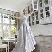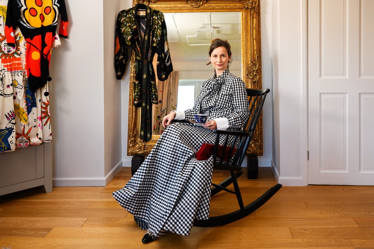 Suomalais-brittiläinen muotisuunnittelija Catharina Eden luo juhlapukuja mittatilaustyönä – "Vaatteissa pitää olla myös huumoria"