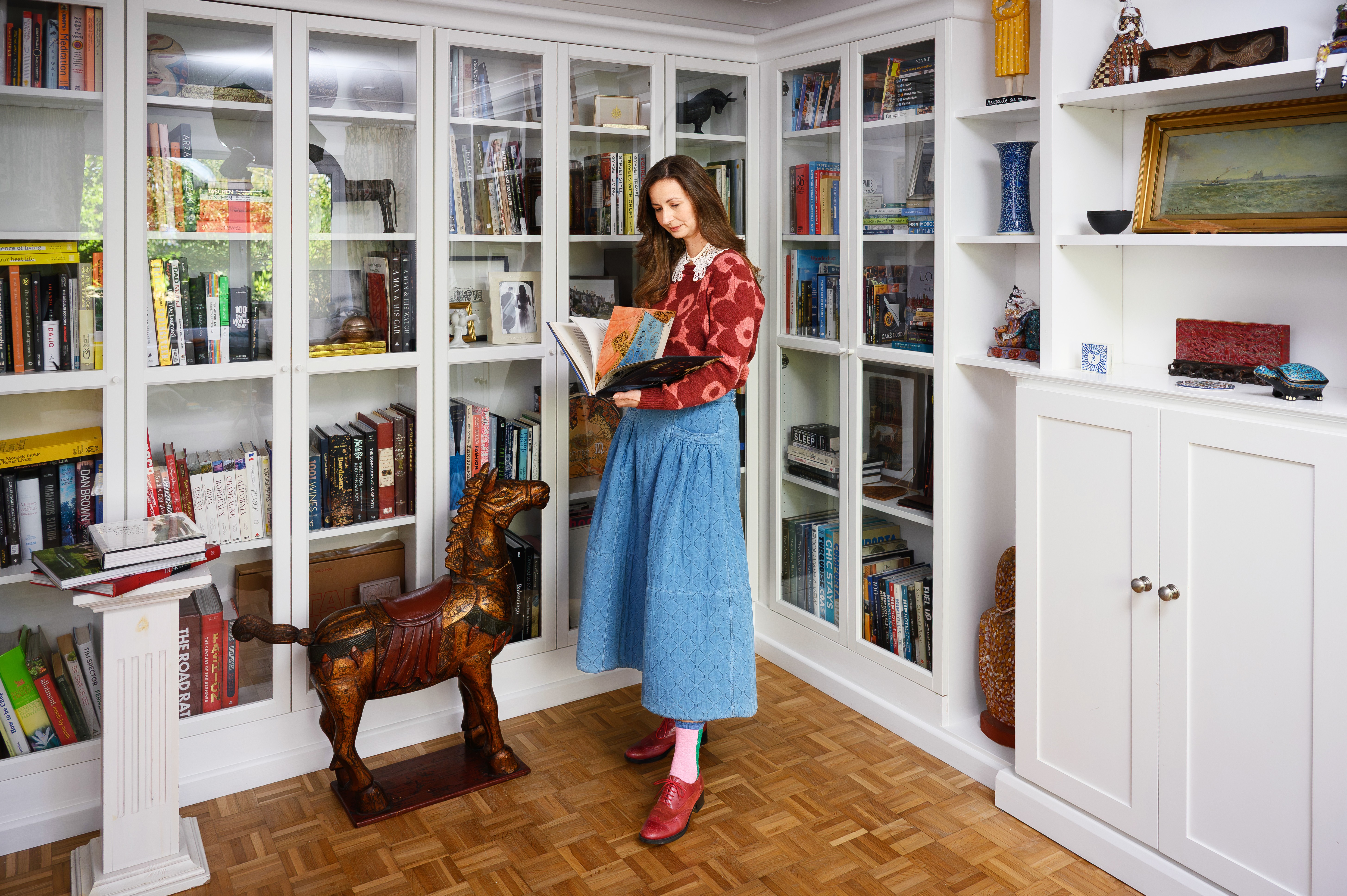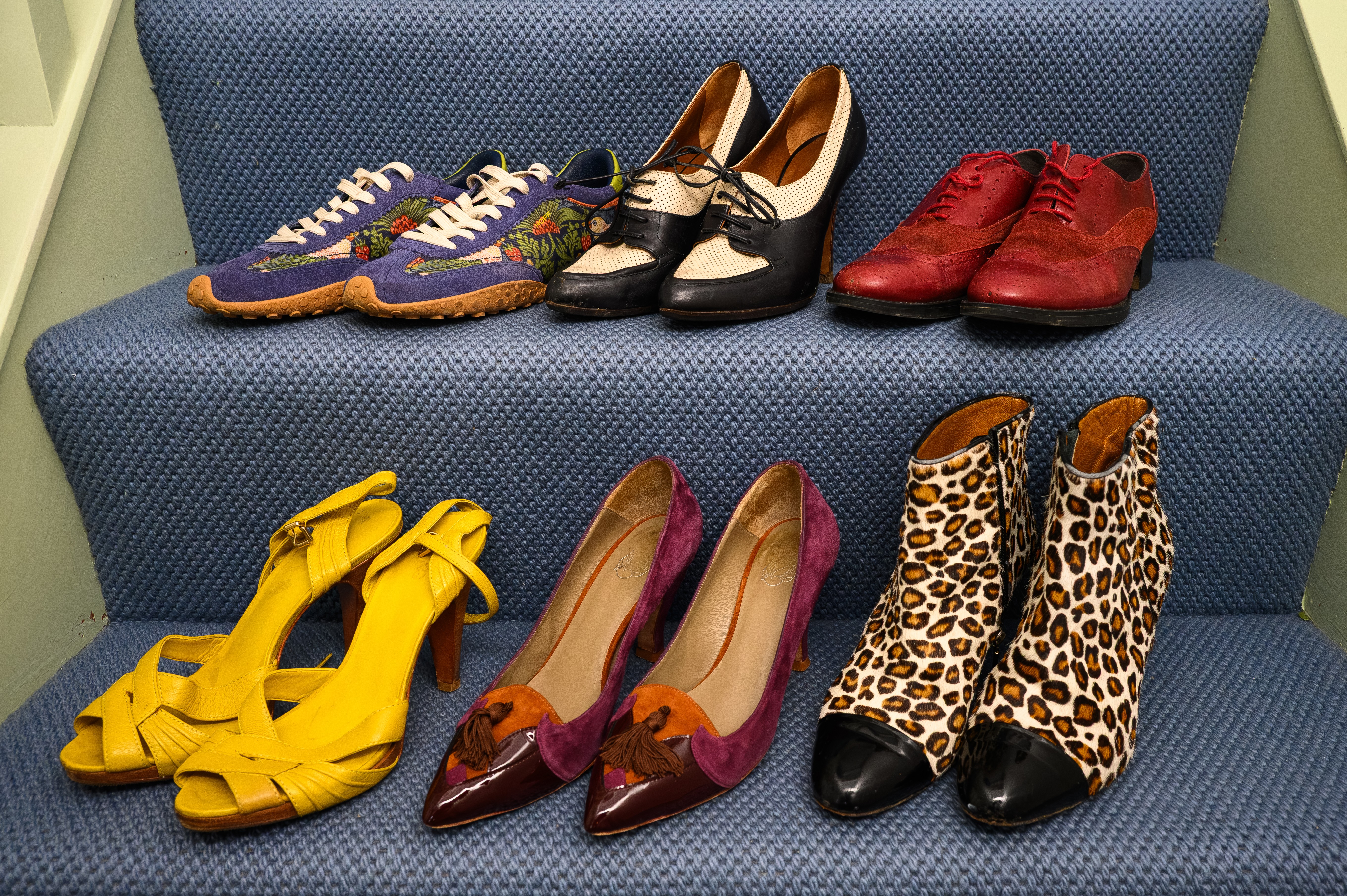 Siniset Hoff-lenkkarit, jotka on koristeltu värikkäällä William Morris -kuosilla. Matkustin varta vasten Hoffin kauppaan Lontoon Regent Streetille niitä ostamaan. Pettymys oli suuri, kun myyjä kertoi kenkien olevan loppuunmyyty. Mutta sitten joku huusi, että uusi erä oli juuri saapunut – ja vieläpä minun kokoani. Kuosi on Morrisin kuuluisa Strawberry Thief (mansikkavaras), jonka hän loi vuonna 1883.