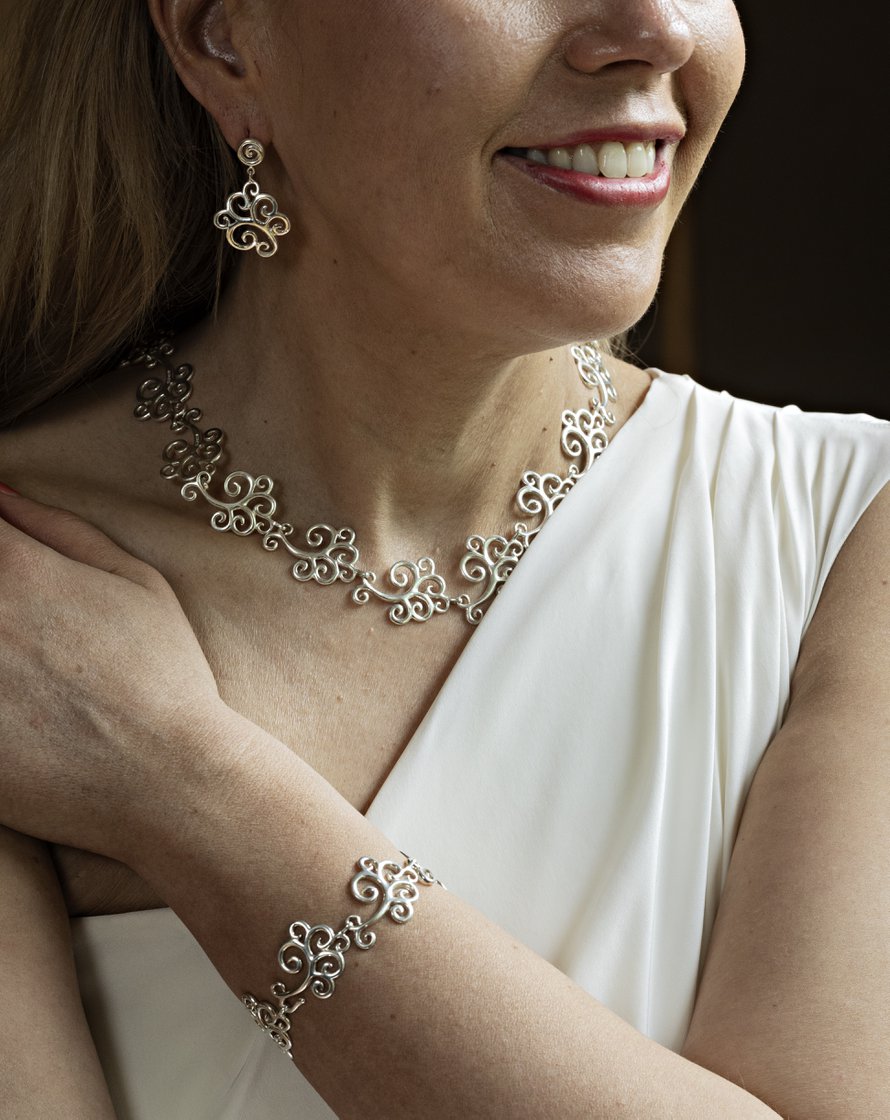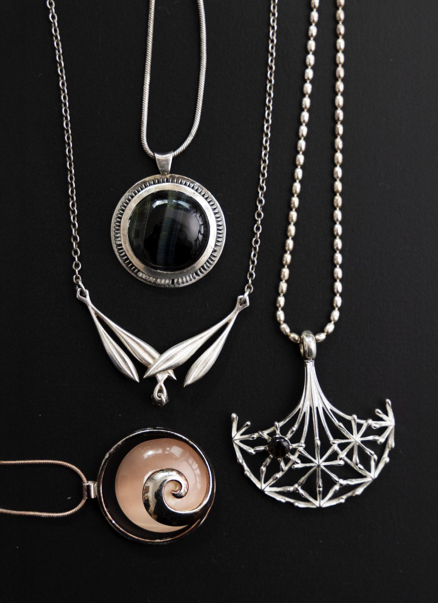 Kaisan isä osti Kalevala Korun Naisen ääni -riipuksen (oikealla) lahjaksi, kun Kaisa aloitti työt Puolustusvoimissa. Kaisan korut ovat äidin ja tädin vanhoja.