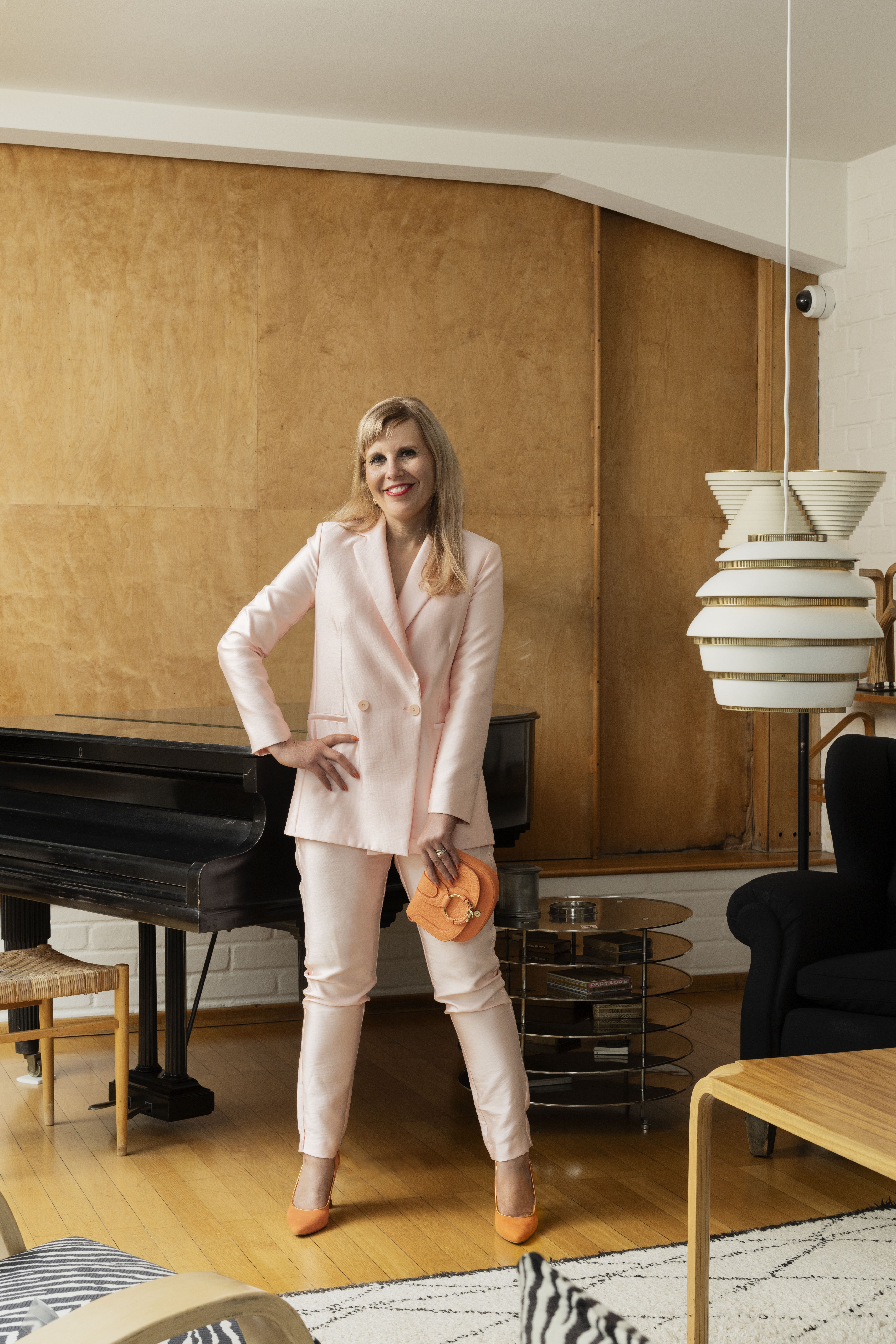 Olen aina käyttänyt paljon mekkoja, mutta 40 vuotta täytettyäni rinnalle ovat tulleet housupuvut. Pidän seteistä, koska silloin ei tarvitse miettiä yhteensopivia ylä- ja alaosia. Olen tullut hieman allergiseksi kirkkaanvärisille boss lady -asuille. Huomaan suosivani pehmeämpiä pastellisävyjä.