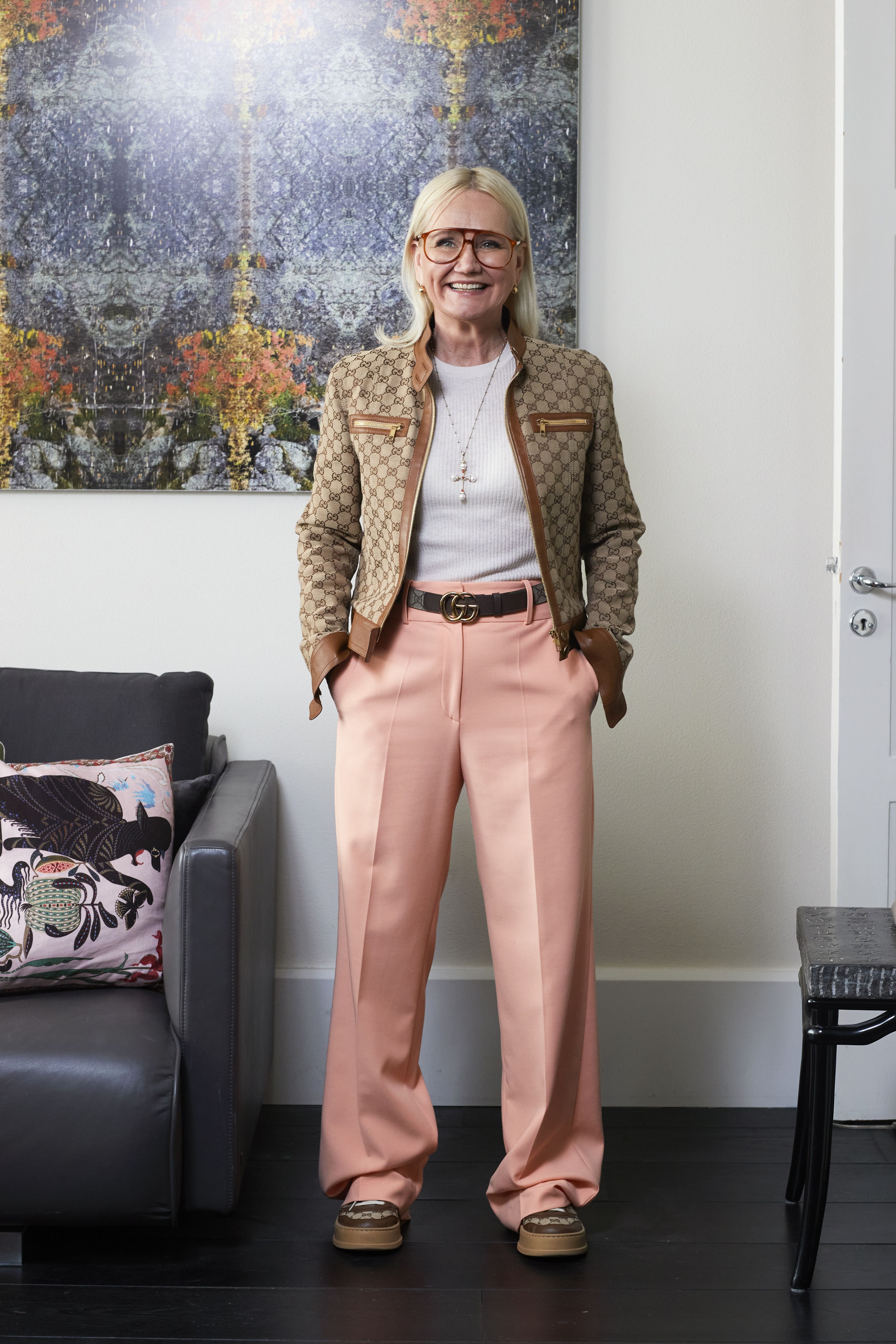 En yleensä suunnittele shoppailujani etukäteen. Vaatevarastoni on niin laaja, että en välttämättä tarvitsisi mitään, mutta kun näen jotakin ihanaa, sovitan ja ostan, jos siltä tuntuu. Laadukkaiden tuotteiden hankkiminen pitää talouden pyörät pyörimässä. Bravuurini on se, että ostan yhtiökumppanilleni Anulle ja jopa hänen miehelleen Karille vaatteita.