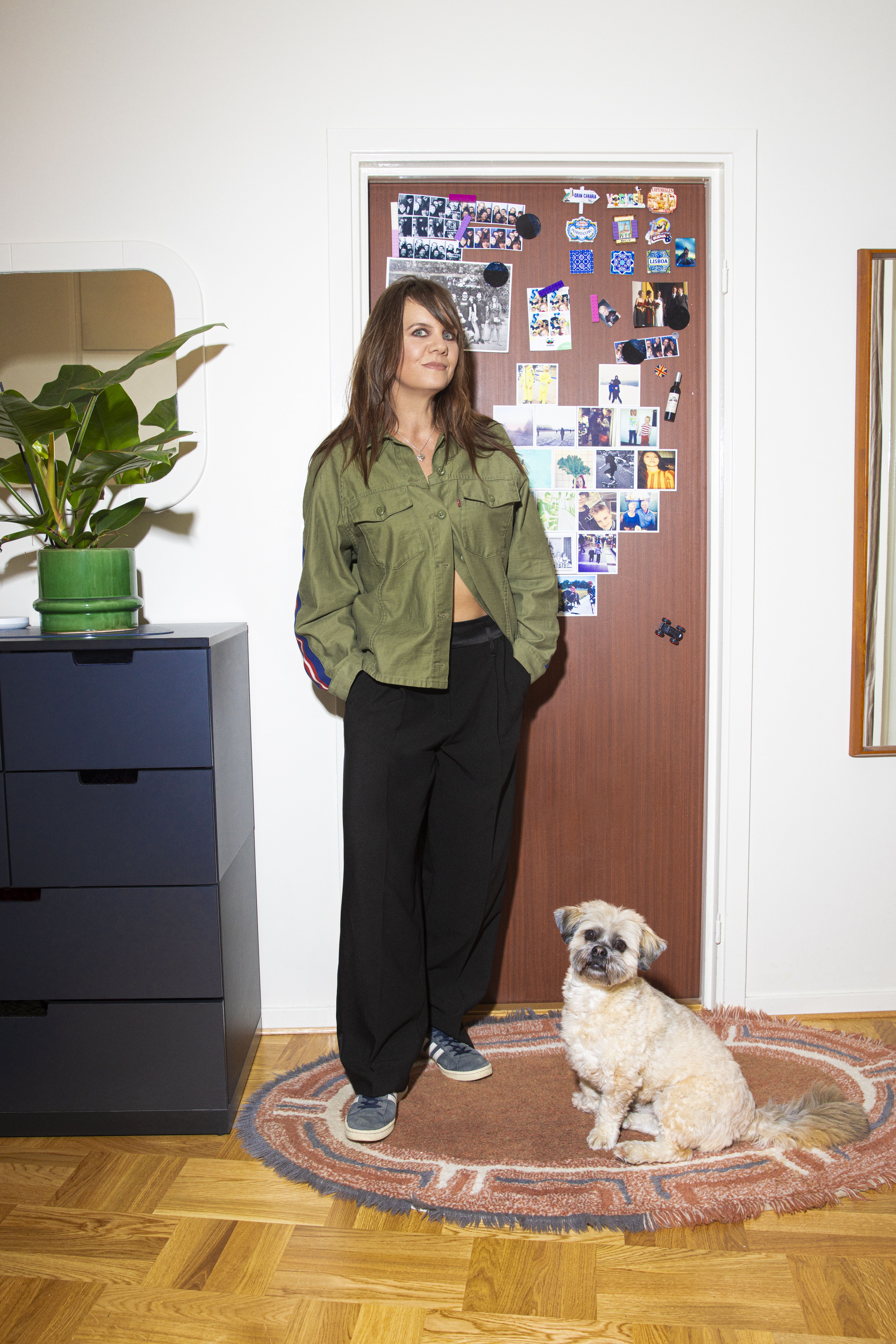 Lempivärini on vihreä, erityisesti armeijan sävyssä. Rakastan eläinkuoseja, kuten leopardia, mutta myös hauskoja lehmä- ja seeprakuoseja. Leikin erilaisilla tekstuureilla. Yhdistän kiiltonahkaa pörröiseen villaan ja metalleja höyheniin. Vanhemmiten olen alkanut arvostaa koruja, etenkin hopeisia. Ne kohottavat asun.