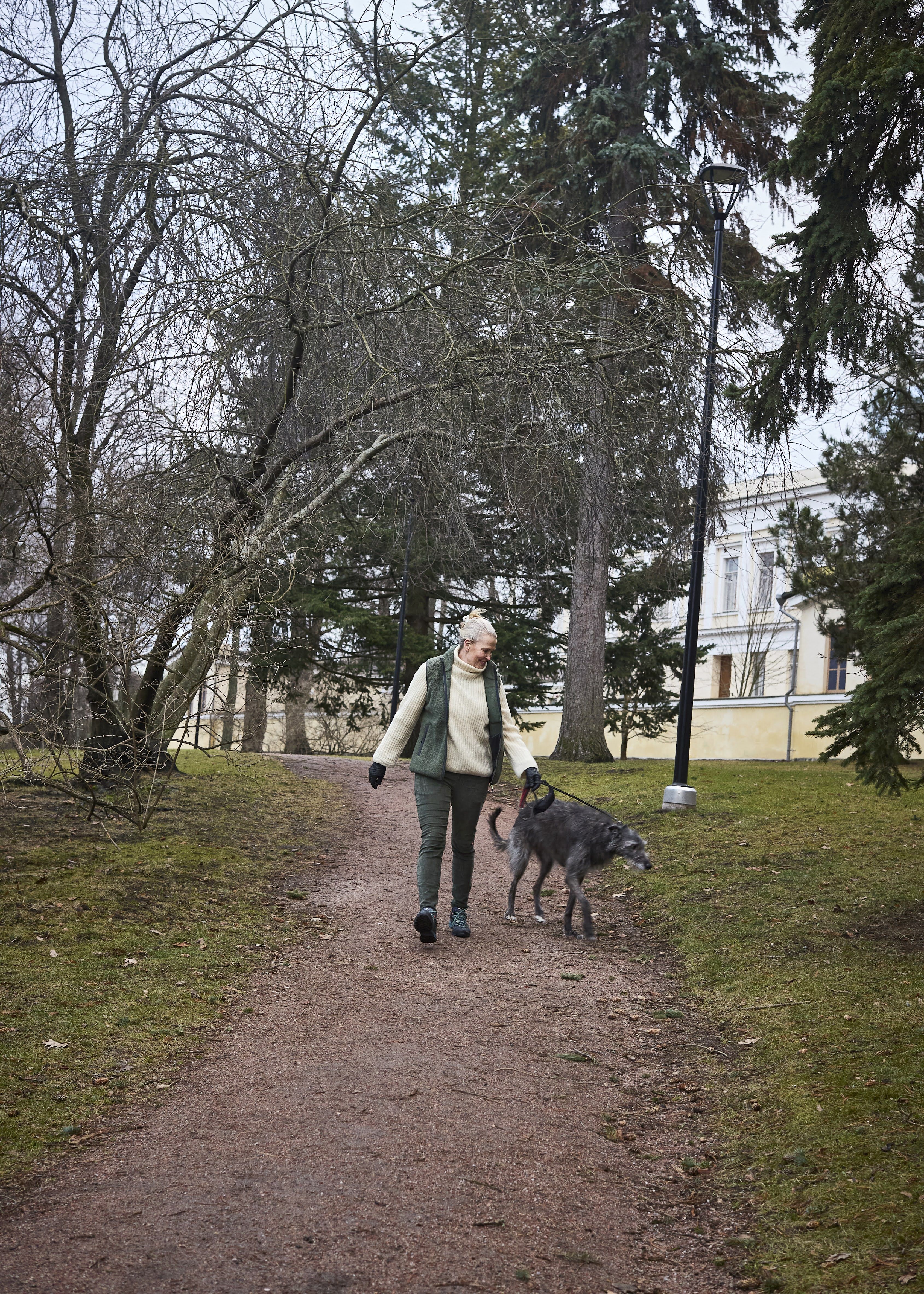 Lisäksi Kirsi käy lajin ryhmäliikuntatunneilla ja barressa Somatic Studiolla ihan kodin naapurissa ja tekee kävelylenkkejä. Hänen ykkösliikuntapaikkansa Yrjönkadun uimahalli on harmillisesti vielä remontissa. Mutta jos Kirsin pitäisi päästä nopeasti hyvään kuntoon, hän luottaisi yhä nuorena hyväksi havaittuun reseptiin eli sauvarinteeseen. Siis toistuvaan ylämäen sauvomiseen kävely- tai hiihtosauvat kädessä reippaaseen tahtiin.