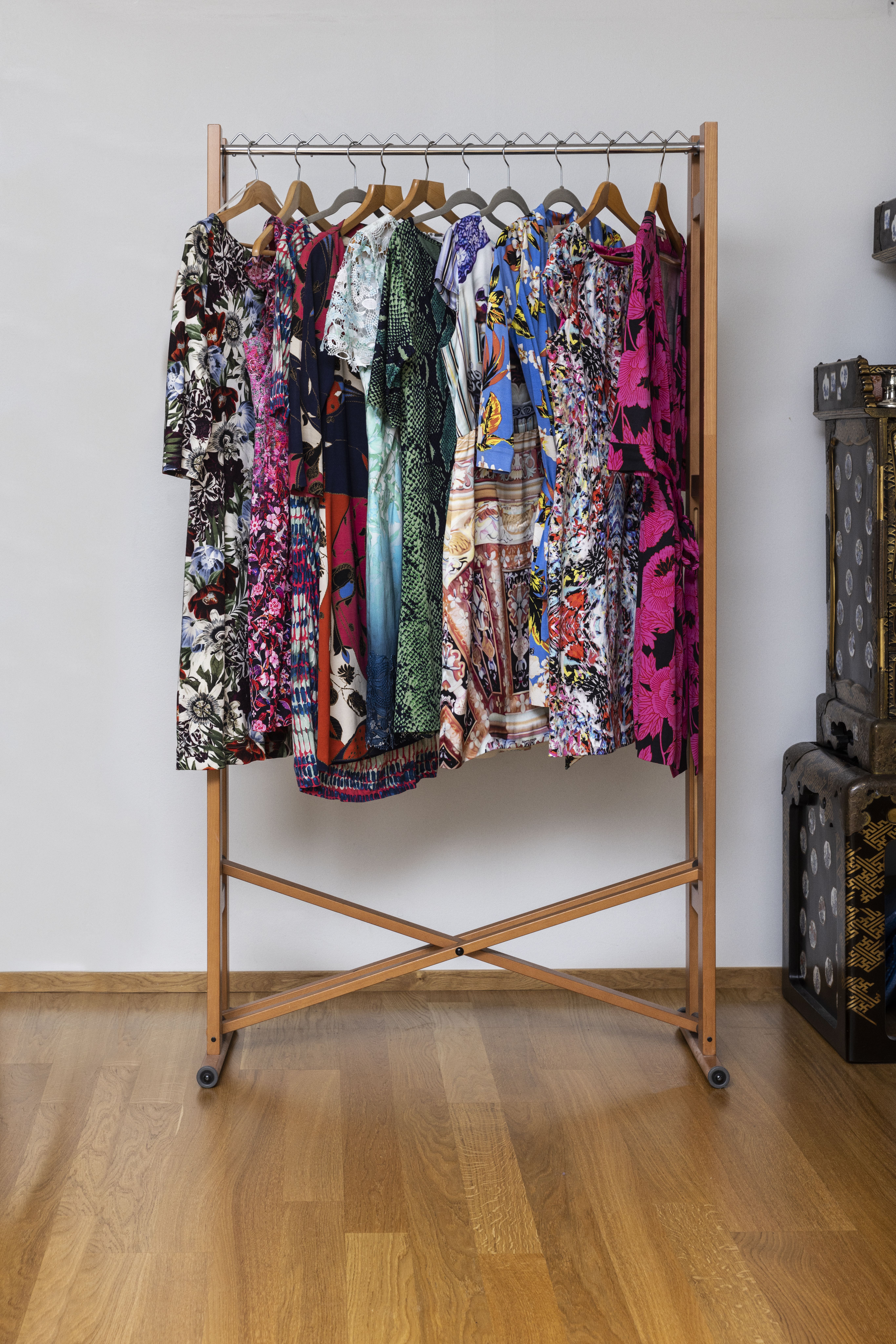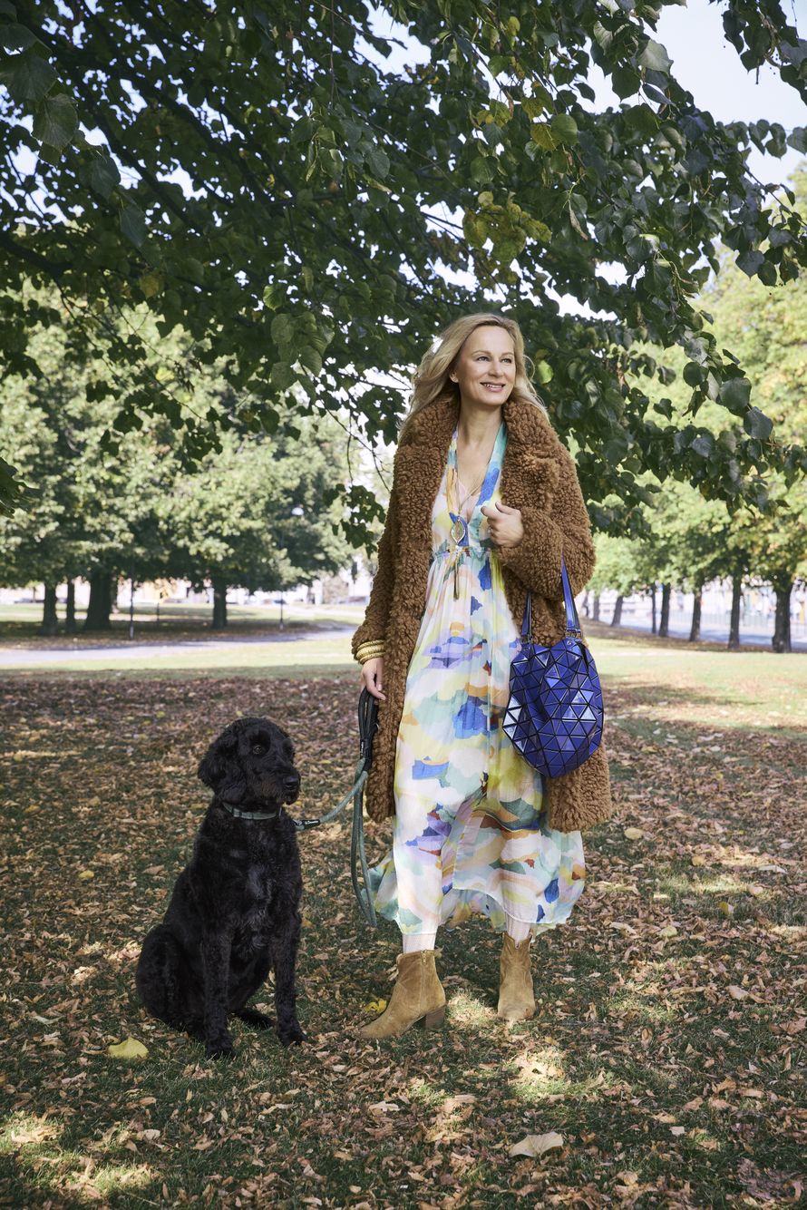 Yleensä pukeudun joko mekkoon tai farkkuihin ja nahkatakkiin tai bleiseriin. Tunnistan hetkessä oman mekkomallini, -värini ja kuvioni. Suosin orgaanisia kuvioita graafisten sijaan. En halua käyttää aikaa asun pähkäilyyn. Pukeudun viidessä minuutissa. Talvitakkeja minulla on yksi musta, yksi vaalea ja yksi ruskea. Liiat vaihtoehdot vain kuormittaisivat arkea.