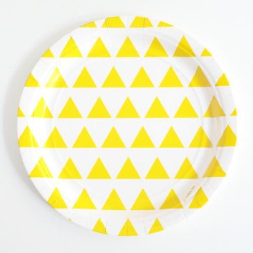 Paperilautasissa muotia ovat graafiset kuosit ja selkeät värit. Tätä lautasta myy Ombrellino.