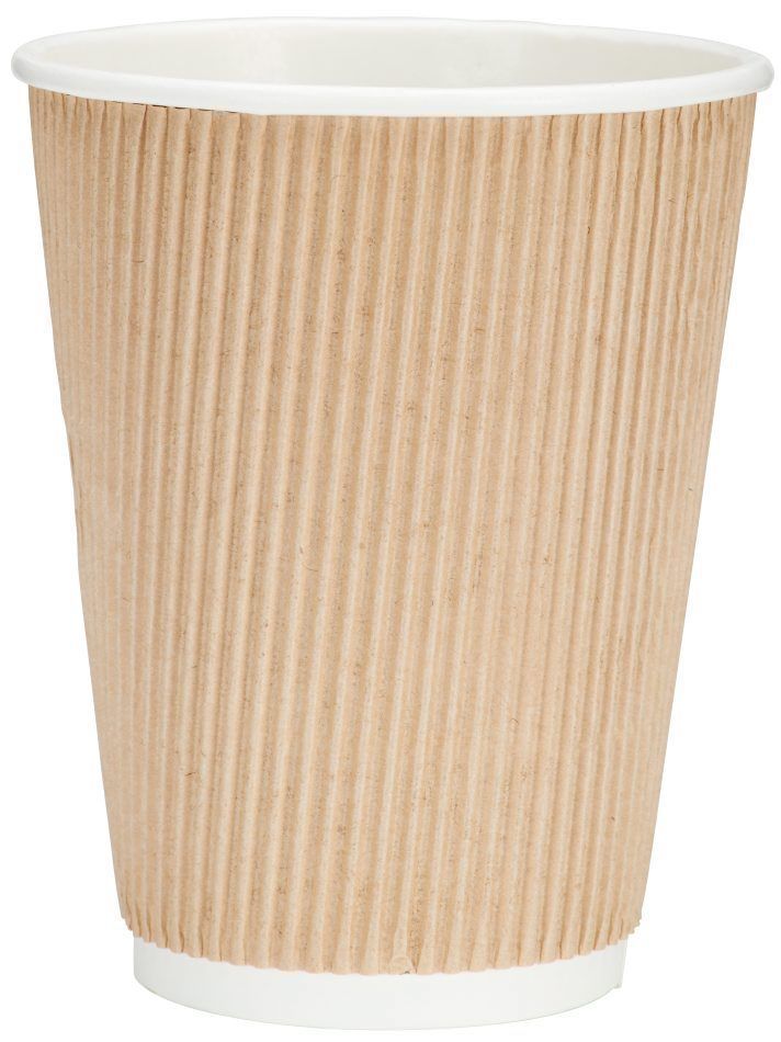 Tämä trendikäs kahvimuki on Biltemasta. Muki on eristetty hauskalla aaltopahvipinnalla.