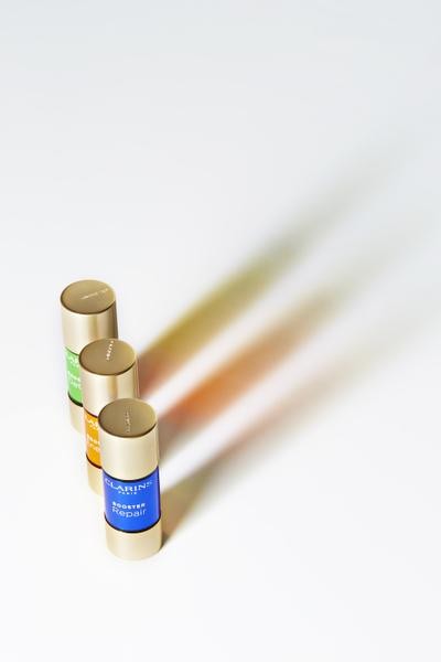 Vuoden tulokkaisiin kuuluvat myös boosterit eli tehotiivisteet. Lisäämällä muutaman pisaran tiivistettä voiteeseen, naamioon tai seerumiin saa siihen lisää tehoa. Clarinsin kolmen boosterin sarjasta Energy virkistää ja kirkastaa väsynyttä ihoa, Repair vahvistaa ja rauhoittaa herkistynyttä ihoa ja Detox poistaa kuona-aineita ja antaa hehkua harmaalle ja elottomalle iholle. Boostereita voi käyttää kuurina tai kertaluonteisesti.