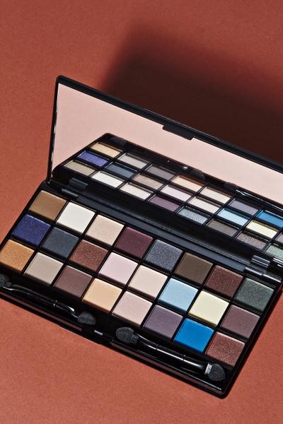 Paletissa on kaikki, mitä omistautuneinkaan silmämeikkaaja voi toivoa. Pehmeitä luonnonsävyjä vaaleasta tummaan, välttämätön musta ja hyvin valittuja vahvoja aksenttivärejä. Mattaa ja hillityä kiiltoa. Lisäksi NYXin väreissä on runsaasti pigmenttiä, ne levittyvät ja kestävät hyvin. Rasian peili on niin iso, että sen avulla voi ihan oikeasti meikata. Jos siveltimiä ei ole saapuvilla, rasiassa on kaksi applikaattoria.