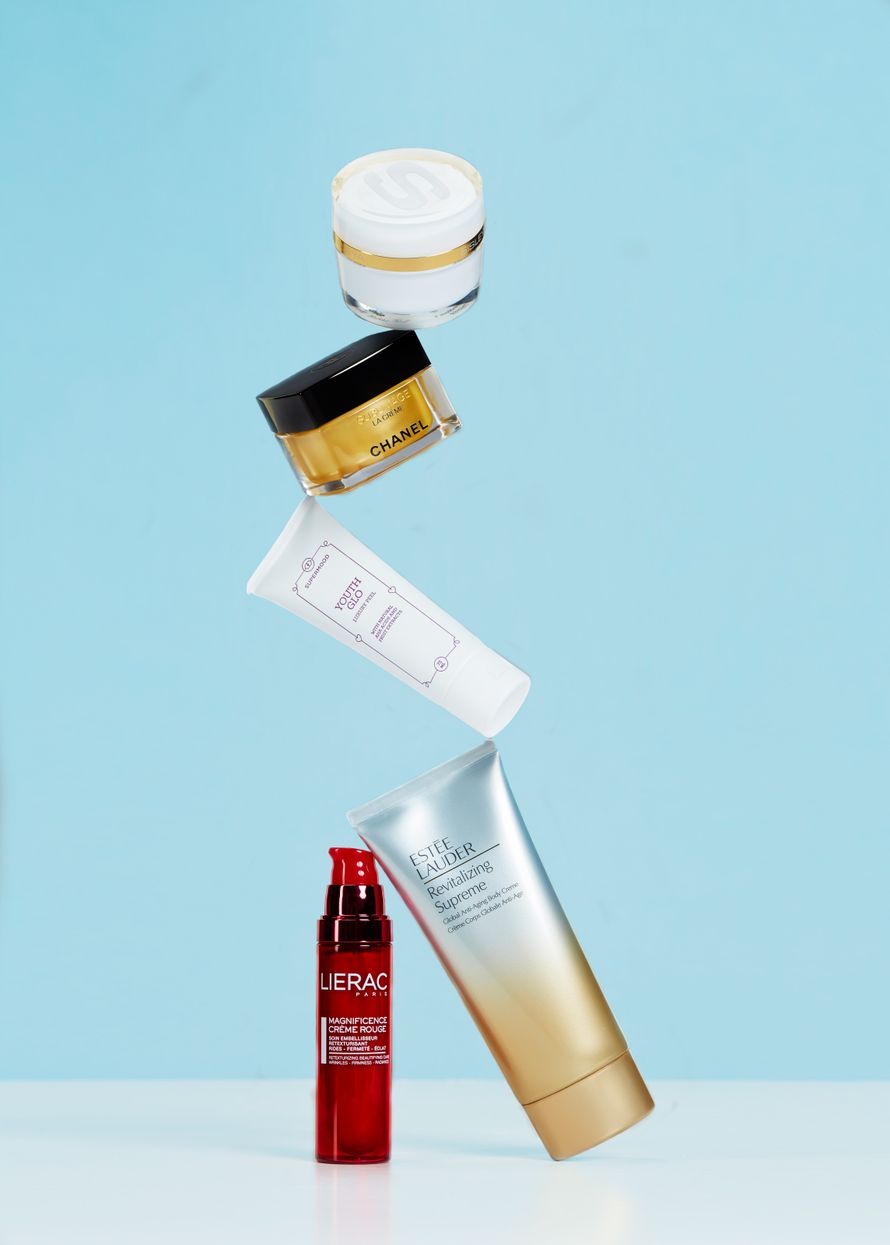 Loistotuote meikin alle on mattaisen pinnan jättävä Crème Rouge, joka on nimensä mukaan punainen. Iholla punaisuus kesyyntyy kaunistavaksi heleydeksi. Se torjuu ihon vanhenemista aiheuttavaa glykoksidaatiota, joka vahingoittaa ihon nuorekkuutta ylläpitäviä proteiineja. Voide silottaa ryppyjä, tasoittaa ja kiinteyttää ihoa. Sopii 40 vuotta täyttäneille. Lierac Magnificence Crème Rouge, 77 e/50 ml.