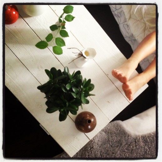 Tarvitsimme uudelle kulmasohvalle pöydän, enkä millään osannut päättää, millaisen haluaisin. Caisa K. -blogista löysin sitten idean.