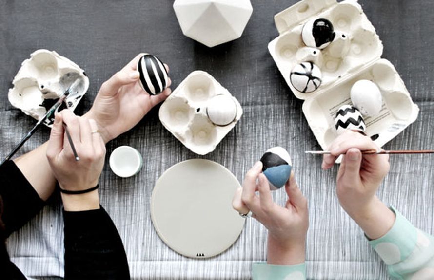 Tänä vuonna maalataan pelkästään mustavalkoisia pääsiäismunia. No, ehkä mukaan voisi laittaa hiukan muodikasta sinistä... Maalaatko sinä munia ja millaisia aiot tehdä?