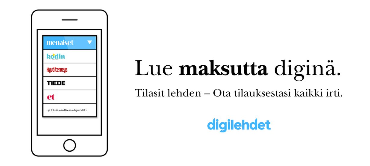 Digilehdet-palvelu on Sanoman aikakauslehtitilaajien asiakasetu. Digilehdet-palveluun kirjaudutaan Sanoma-tilin avulla ja lähetämme sinulle palvelun käyttöohjeet sähköpostitse heti lehtitilauksesi alussa. Pääset tutustumaan Digilehdet-palvelun koko sisältöön tilaamalla vähintään yhden Sanoman aikakauslehden kotiisi. Kahden viikon tutustumisjakson jälkeen voit maksutta lukea tilaamasi lehden lisäksi toista vapaavalintaista digilehteä ja sen koko arkistoa. Saat jatkuvan tilaajan etuna kaikkien 14 lehden uusimmat numerot sekä lehtien arkistot käyttöösi jatkaessasi tilaustasi myös tarjousjakson jälkeen. Ota siis tilauksestasi kaikki irti ja nauti monipuolisesta tarjonnastamme! Sanoman lehtien parissa viihdyt taatusti!