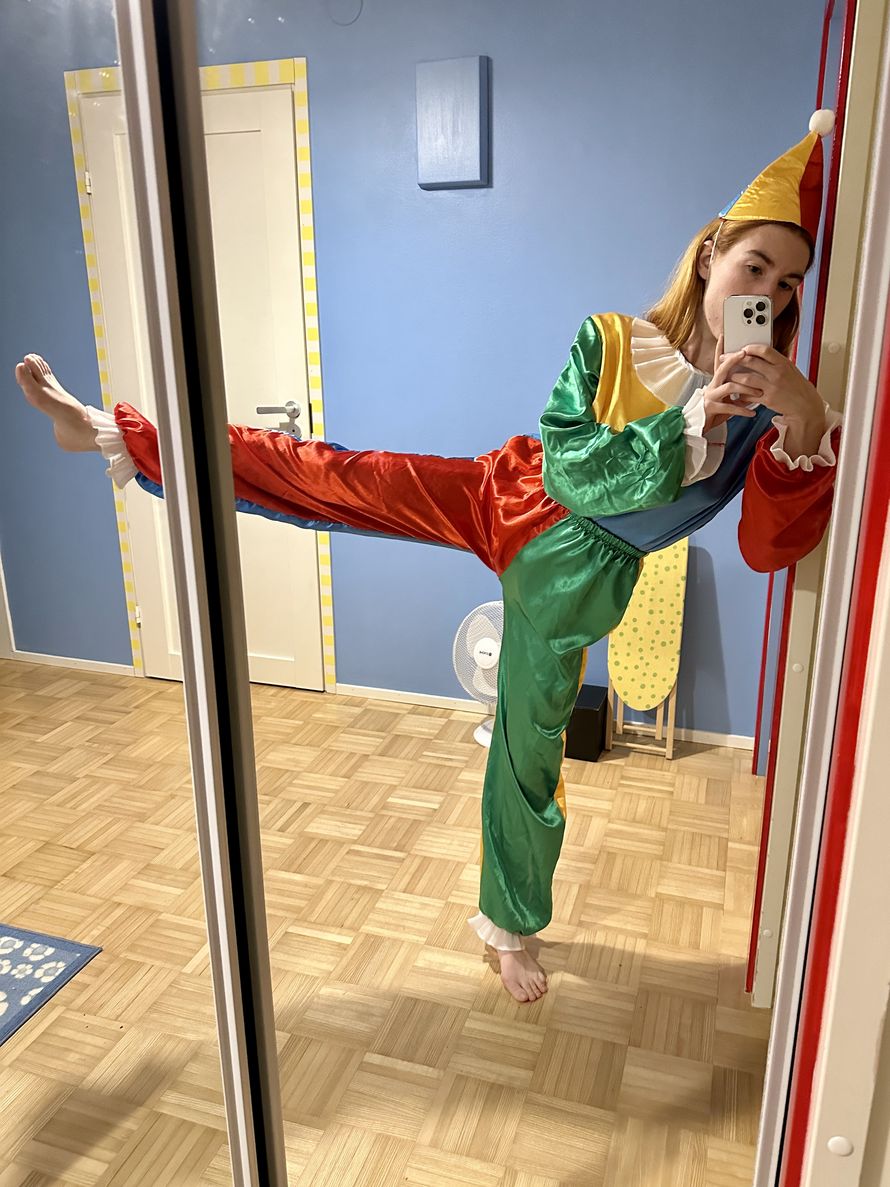 8. Luottovaatteisiini kuuluvat Saks Pottsin mustat farkut, Flore Floren paidat ja loaferit. Pukeutumisessa arvostan mukavuutta ja käytännöllisyyttä, sisustuksessa värejä, estetiikkaa ja pehmeyttä. Ostan suurimman osan vaatteistani käytettynä esimerkiksi Vestiaire-verkkokaupasta.