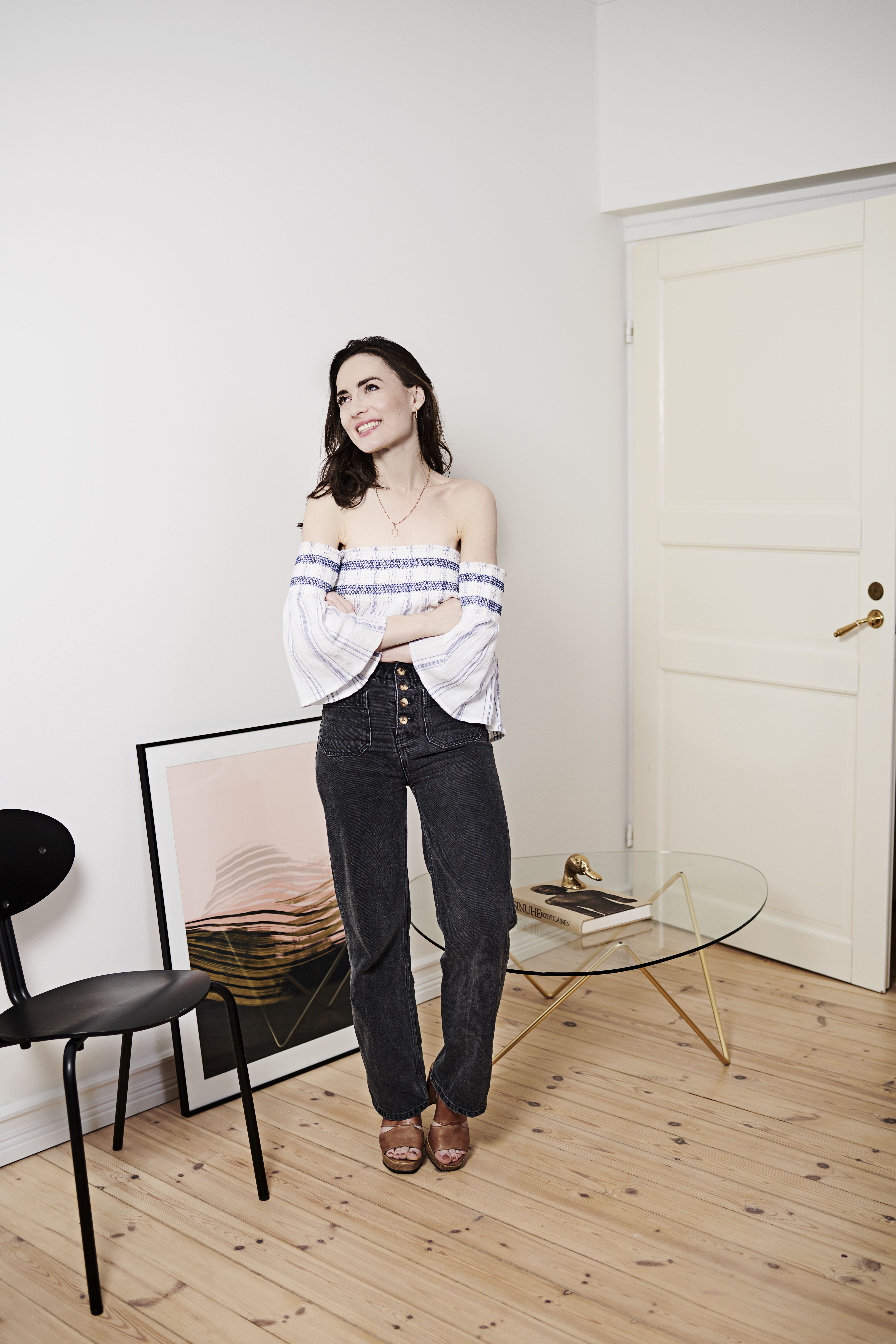 Valkoinen, leveähihainen puuvillapaita jättää olkapäät paljaiksi ja harmaissa farkuissa on suorat lahkeet. Korvanlehtiin on pujotettu sirot kultaiset amulettikorut. Tällaisessa tyylissä kestävään muotiin erikoistunut yrittäjä ja korusuunnittelija Elina Siira viihtyy parhaiten: kokonaisuudessa on jotakin liehuvaa ja jotakin ryhdikästä, eikä mikään asun elementeistä ole rasittanut luontoa tarpeettomasti.