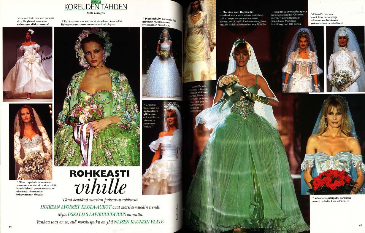 Gloria esitteli rohkeaa morsiusmuotia vuonna 1995 – tältä näyttivät huippusuunnittelijoiden upeimmat puvut