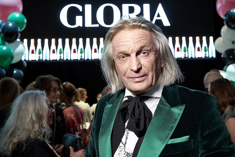 "Odota, haen ensin samppanjaa kurkun kostukkeeksi, kun olen hieman flunssassa", muotisuunnittelija Jukka Rintala sanoi Gloria Fashion Show'hun saapuessaan.
