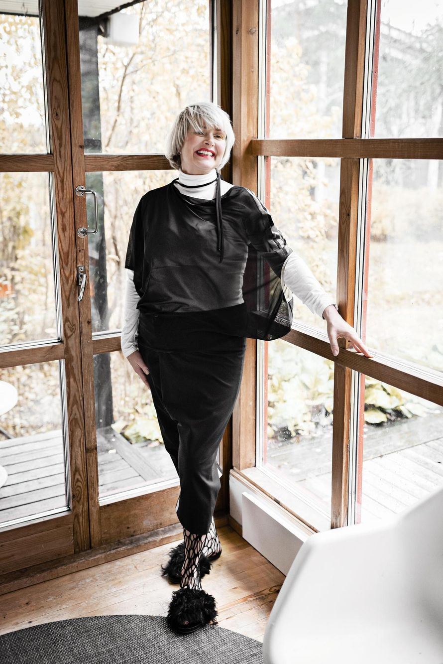 Haluan hymyilyttää ihmisiä tyylilläni. Leikkisyys, epäsymmetrisyys ja pienet virheet kuuluvat siihen. Hiukseni saattavat olla ihan pystyssä, vaikka muuten asuni olisi huoliteltu. Juhla- ja arkilookini eivät juuri eroa toisistaan. Jumitun helposti yhteen tyyliin, jota käytän puoli vuotta. Jos ihmiset näkevät minut päivittäin, näytän aina samalta, mutta jos he näkevät minut pari kertaa vuodessa, olen joka kerta ihan erinäköinen.