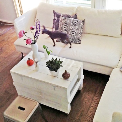 Olohuoneessa katse kiinnittyy taiteilija Jani Leinosen suunnittelemiin muropakkauksiin ja maalaukseen nimeltään Pyhä Sylvi and the followers. Myös taideteokset linkittyvät suunnittelijan työhön, maalauksen ja muropakkausten kuviot nimittäin toistuvat Hammin ja Maikun suunnittelemissa mekoissa.