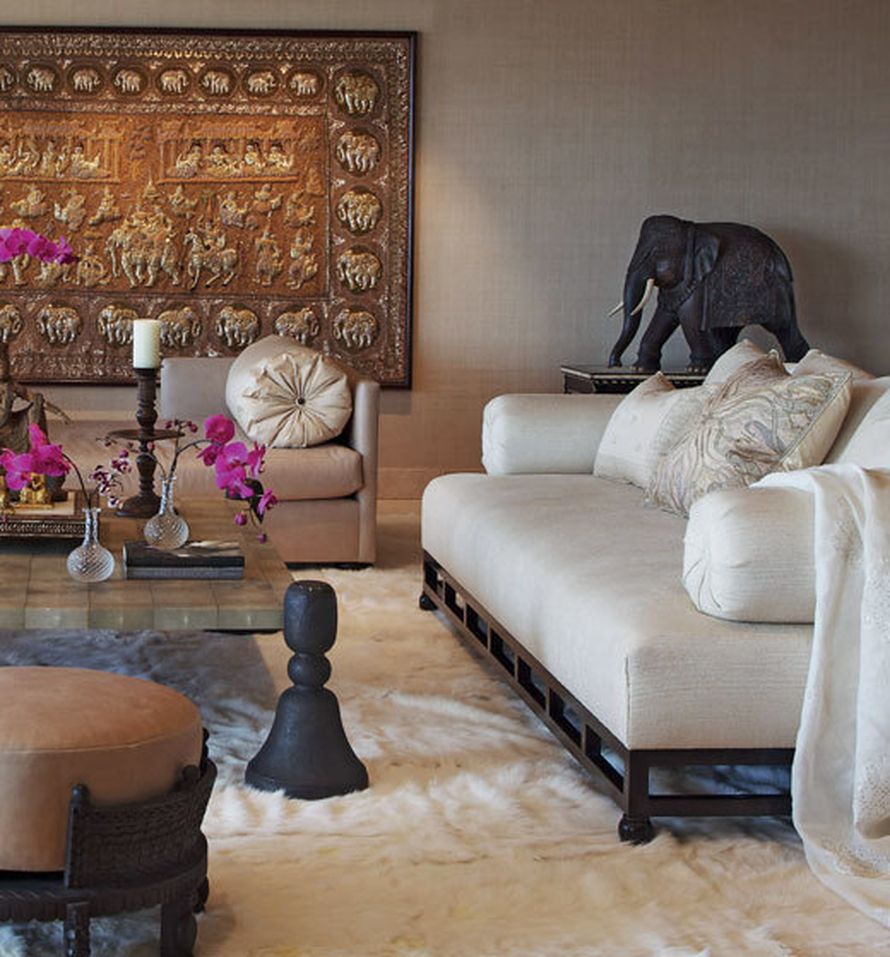 Seuraavaksi Martyn Lawrence-Bullard löysi oviaukoksi kaiverretun kolminkertaisen holvin, joka on peräisin rajasthanilaisesta palatsista. Kulisseihin lisättiin satoja vuosia vanhoja esineitä, kuten kiinalainen häävuode, tiibetiläisiä ja indonesialaisia temppeliaarteita, hiukan syyrialaista kamelinluuta sekä silkkiä, kultaa ja pronssia. Maaginen maailma oli valmis ja kelpasi loistavasti maailmantähdelle.
