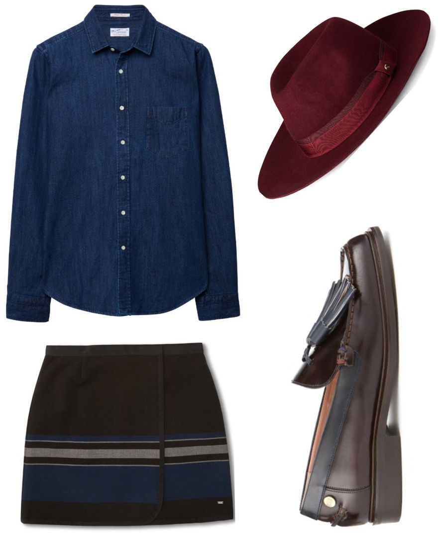 Mini jatkaa muodikkaana syksylläkin, ja ilmojen viiletessä mustat sukkahousut täydentävät kokonaisuuden. Farkkupaita tekee asusta rennon ja fedora-hattu viimeistellyn. Lyhyt hame on parhaimmillaan yhdistettynä matalakantaisiin kenkiin, kuten vaikka klassisiin hapsuloafereihin.