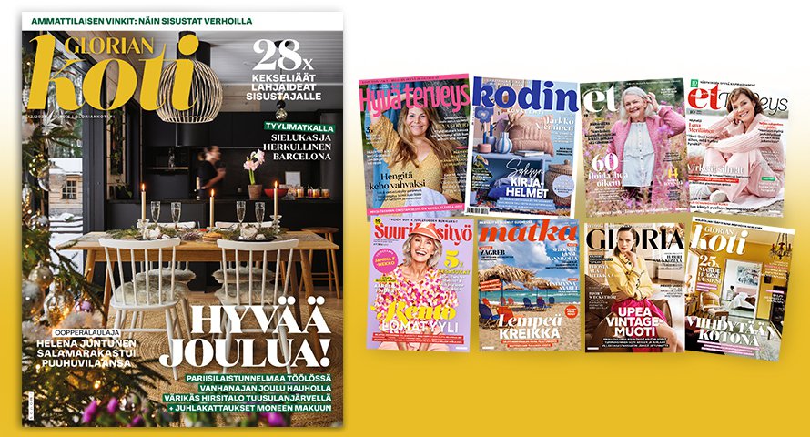 Osallistu arvontaan ja voit voittaa kolmen kuukauden tilausjakson valitsemastasi Sanoman aikakauslehdestä: Gloria, Glorian Koti, ET-lehti, ET Terveys, Hyvä terveys, Kodin kuvalehti, Matka, Suuri käsityö. Arvomme kaksi lehtitilausta. Yhden palkinnon arvo on 38-75 euroa.