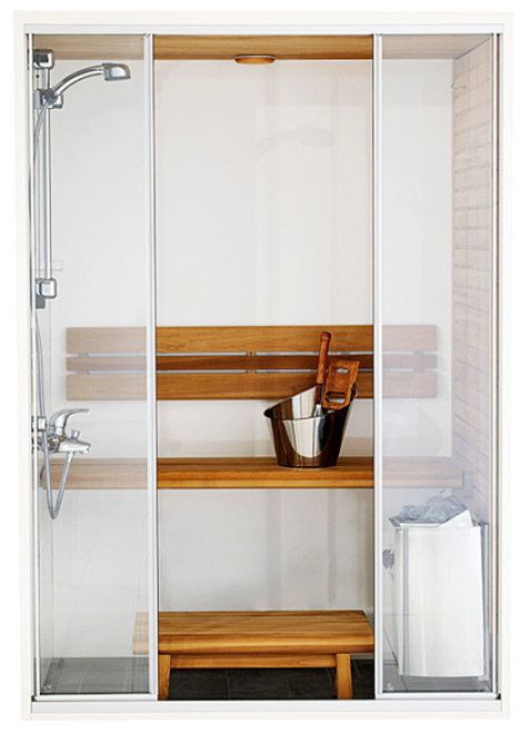 Sauna toimii myös ihan pikkuisena. Minisaunan voi sijoittaa mainiosti vaikka kylpyammeen paikalle. Kahdenistuttavassa Capella Dual -saunassa pääsee myös suihkuun vain lauteita nostamalla. Saunaa myy Netrauta.fi.