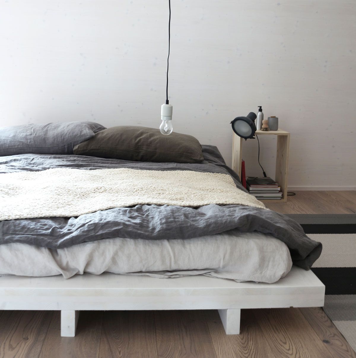8. TOISENLAINEN SÄNKY. On kiva idea korvata perinteinen sänky yksinkertaisella puulavalla. Pehmeä, hieman japanilaishenkinen unitila rentouttaa mielen, kun siellä ei ole muuta kalustusta kuin sänky ja yöpöytä. Vivola, kohde numero 19.