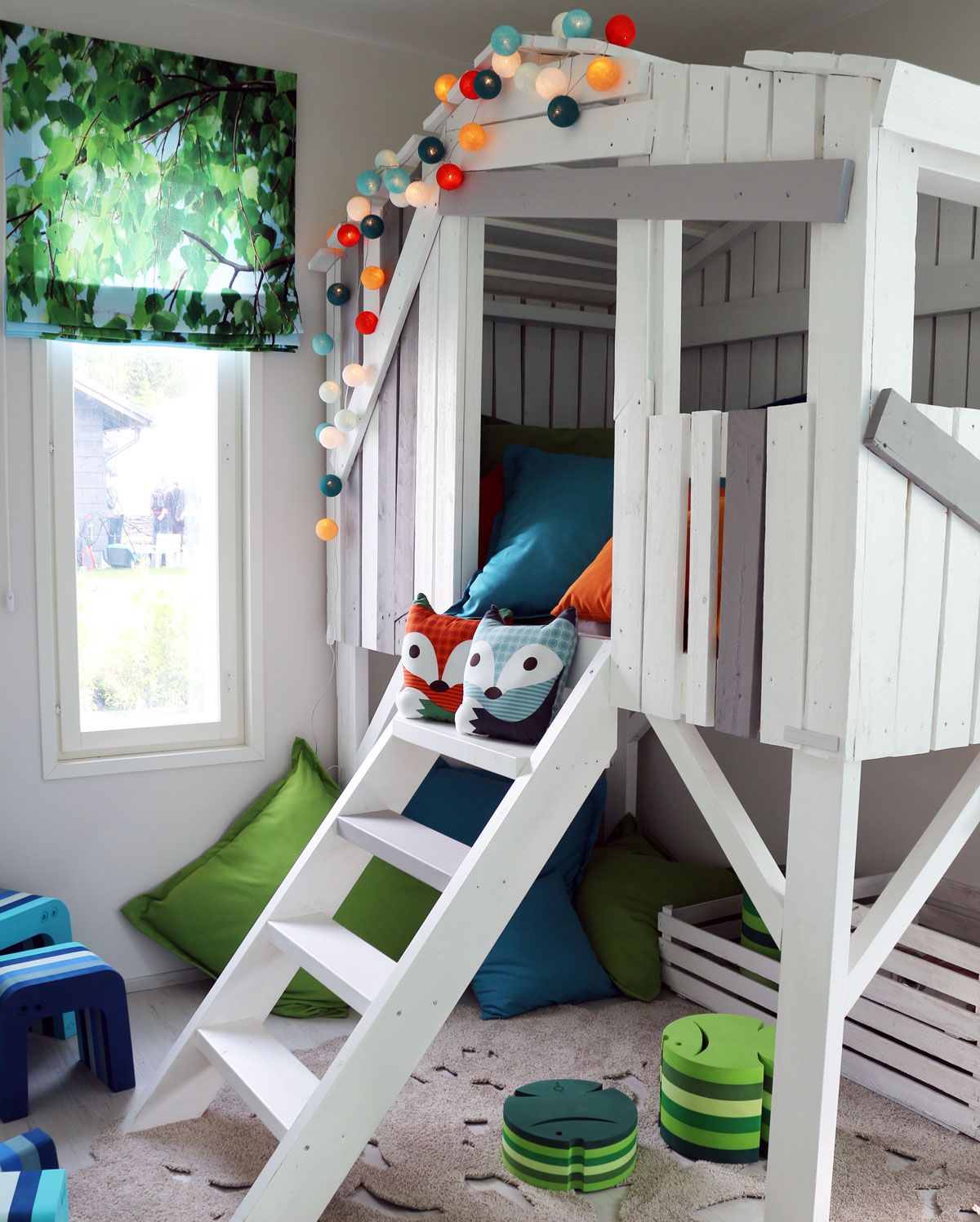 EKSTRAIDEA! RAKENNA MAJA. Lapset rakastavat majoja, ja siksi laudoista rakennettu piilopaikka on huippuidea lastenhuoneeseen. Majassa voi leikkien lomassa ottaa tirsat, ja siellä voi yövyttää lasten yökylävieraita. Tämän majan rakensi puuseppä Osmo Tukiainen. Rock-kivitalo Villa Aletta, kohde numero 38.