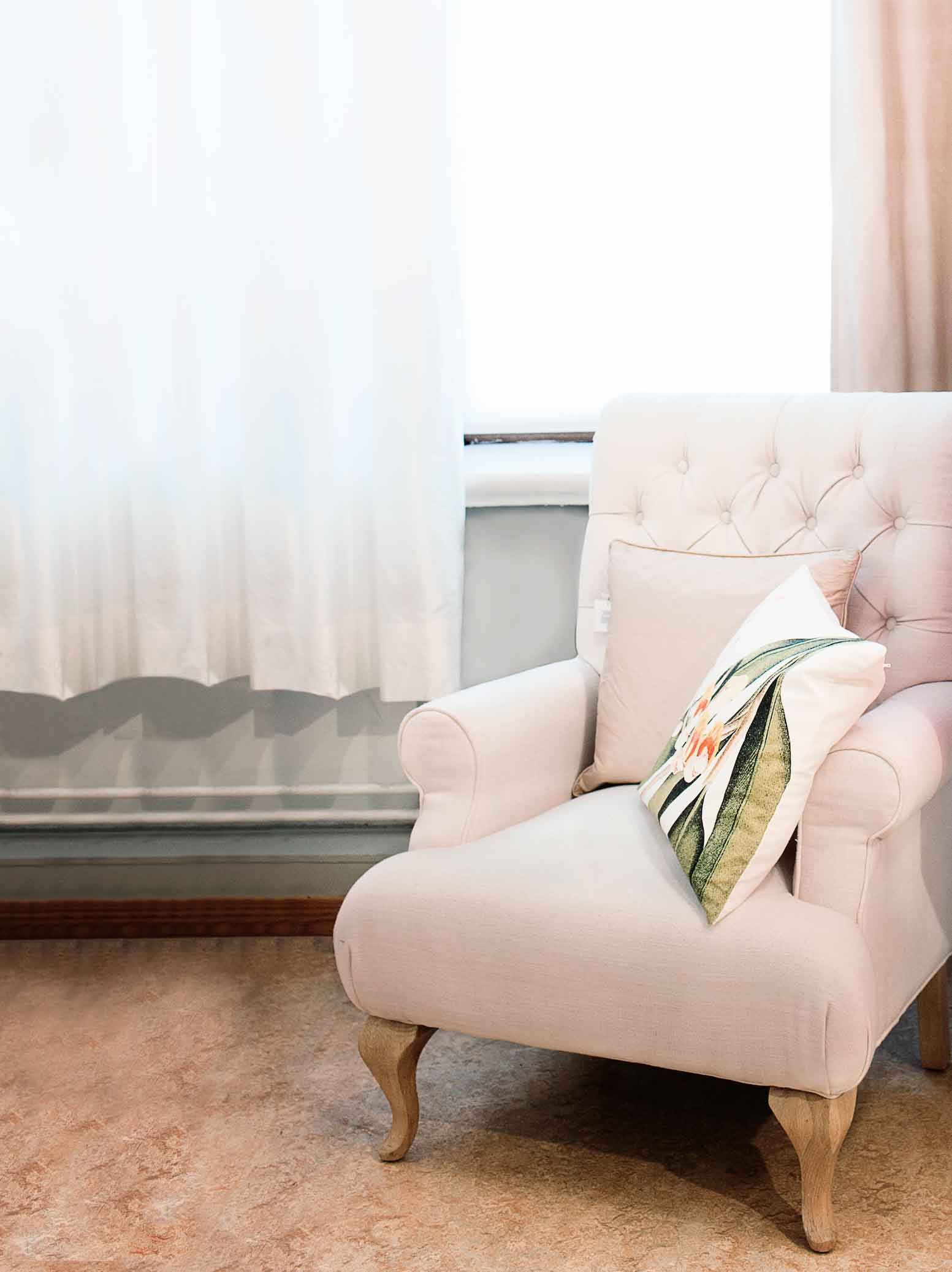 "Sijoitin eteen huonekalun, jonka takaa liian lyhyt verho ei näy."